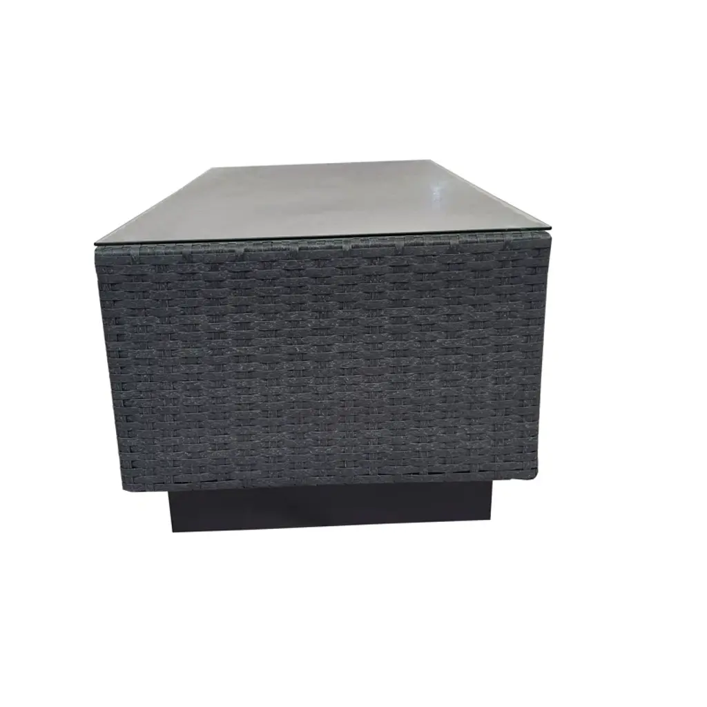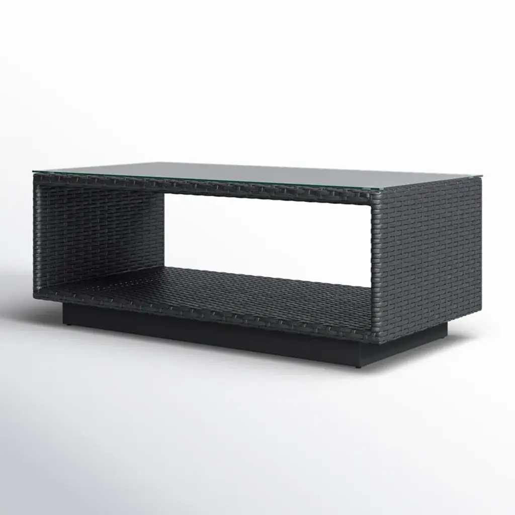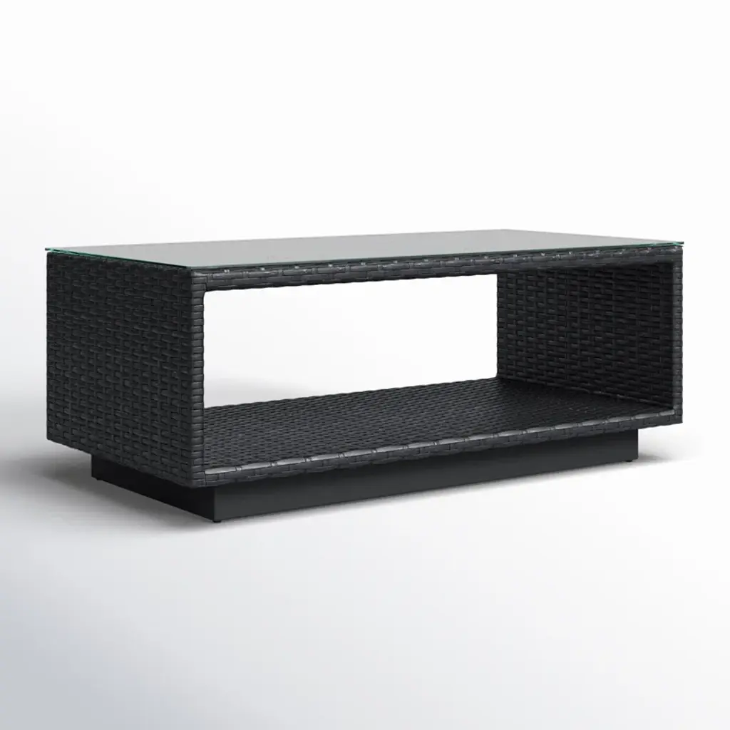 Aceline Wicker Outdoor Coffee Table With Glass Top And Shelf
