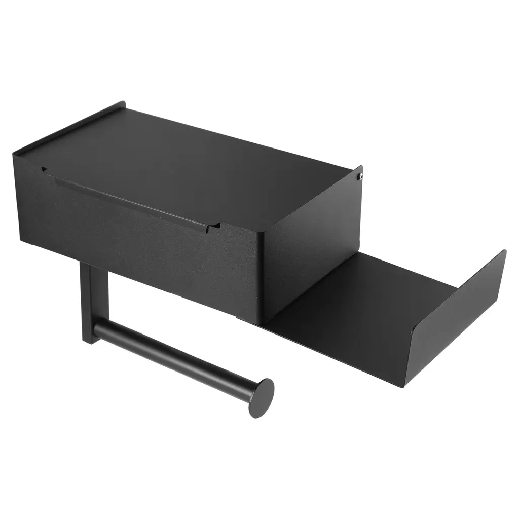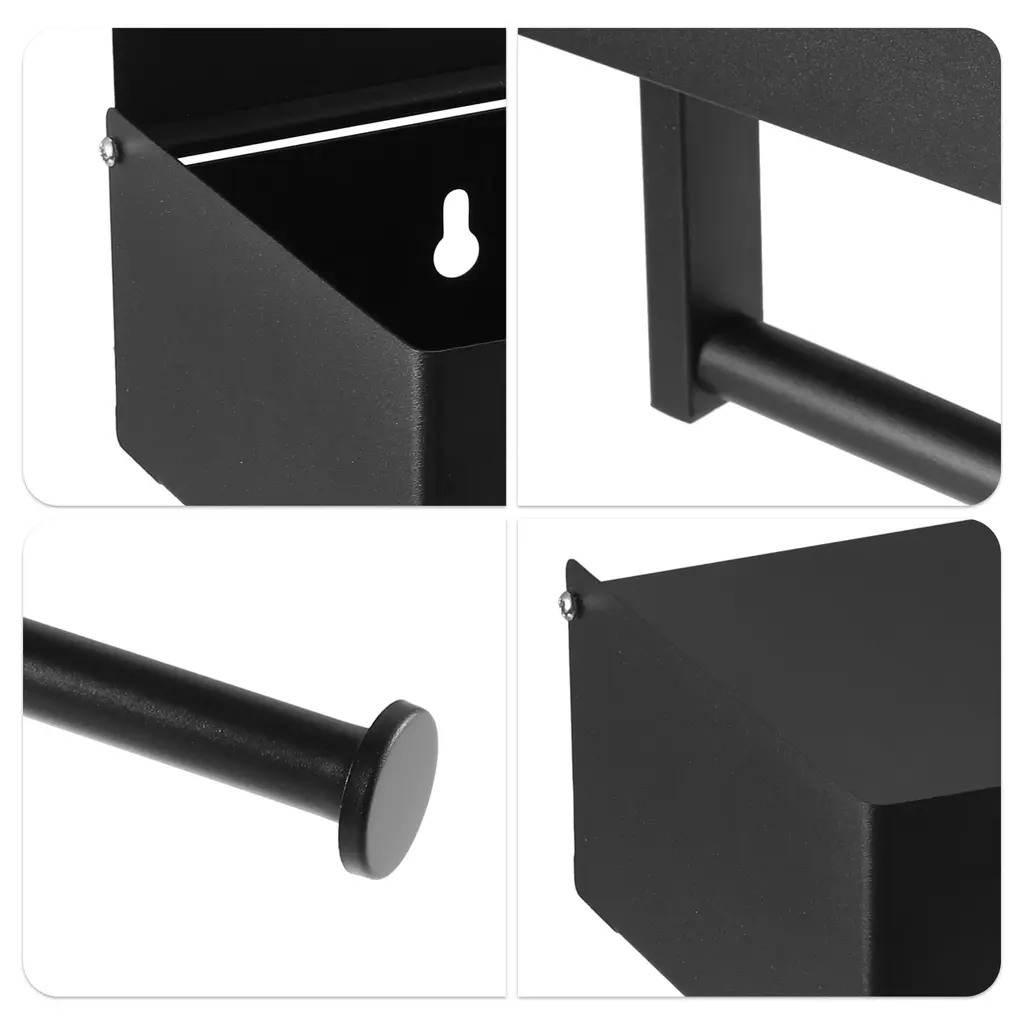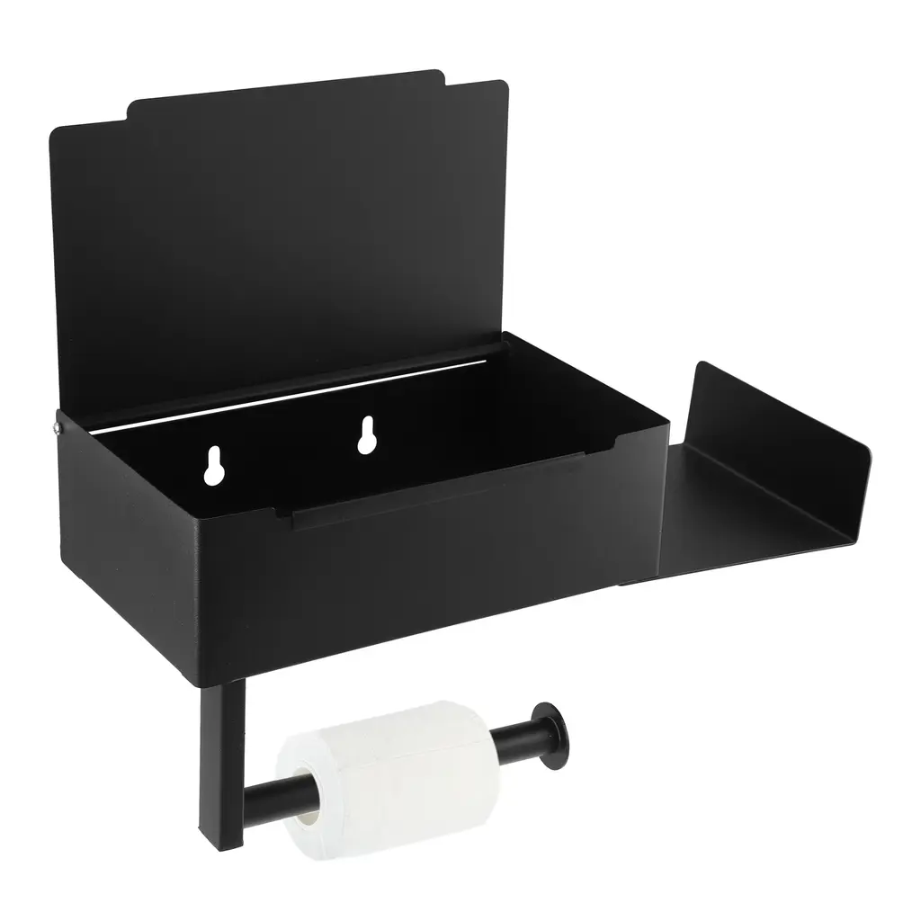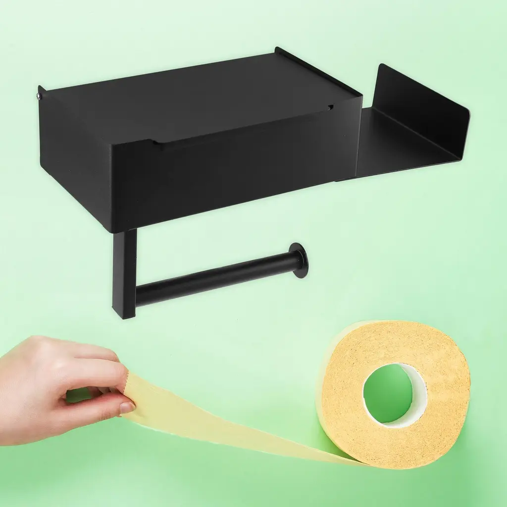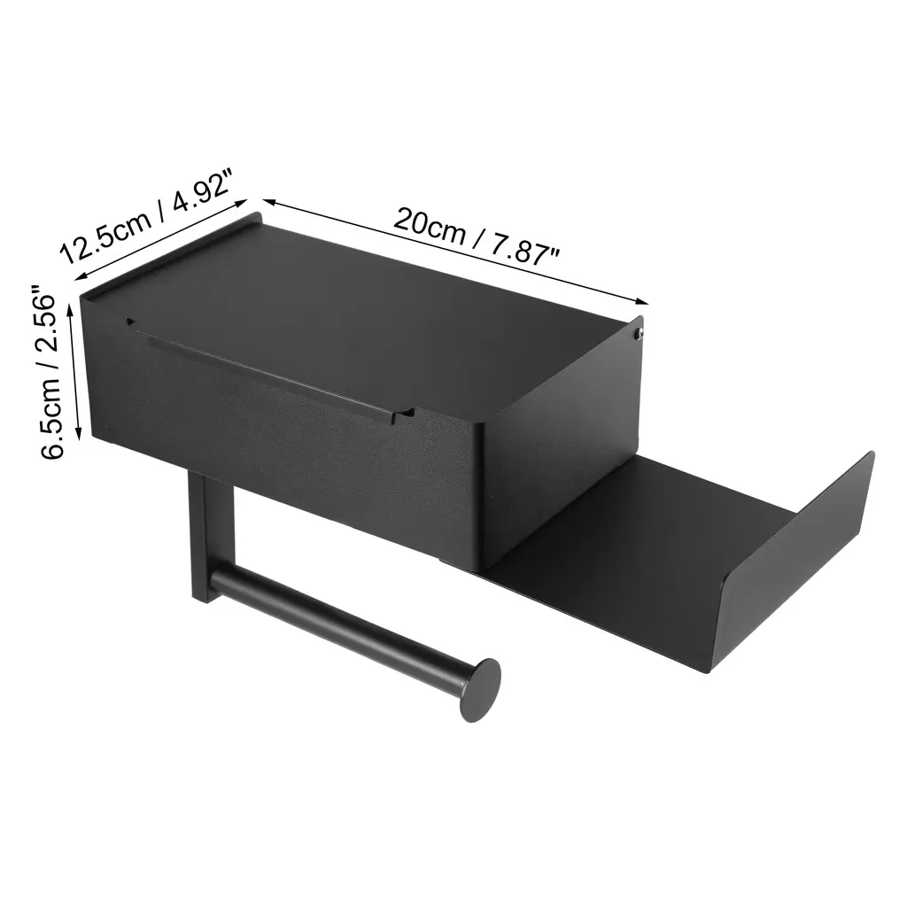Features:WITH PHONE HOLDER DESIGN: This toilet paper holder has a storage bracket, which can provide a place for you to place your mobile phone and other items, which is more convenient.MATERIAL: Made of 304 stainless steel, the good waterproof performance makes the toilet paper holder more durable.EASY TO INSTALL: The toilet paper holder has TWO installation methods. Adhesive Strips Installation: Tear off the sticker and stick it on smooth walls like tiles, etc. It won't damage your walls. Screw installation: You can install it on any wall that can be punched.STRONG BEARING: This toilet paper holder has a strong load-bearing capacity, so you don't have to worry about the problem of falling due to being overweight when placing items such as mobile phones.Specifications:Product Name: Toilet Paper HolderMaterial: Stainless SteelSize: 20x12.5x6.5cm / 7.87"x4.92"x2.56"(L*W*H)Quantity: 1 PcsColor: BlackPackage List:1 Pcs Toilet Paper Holder