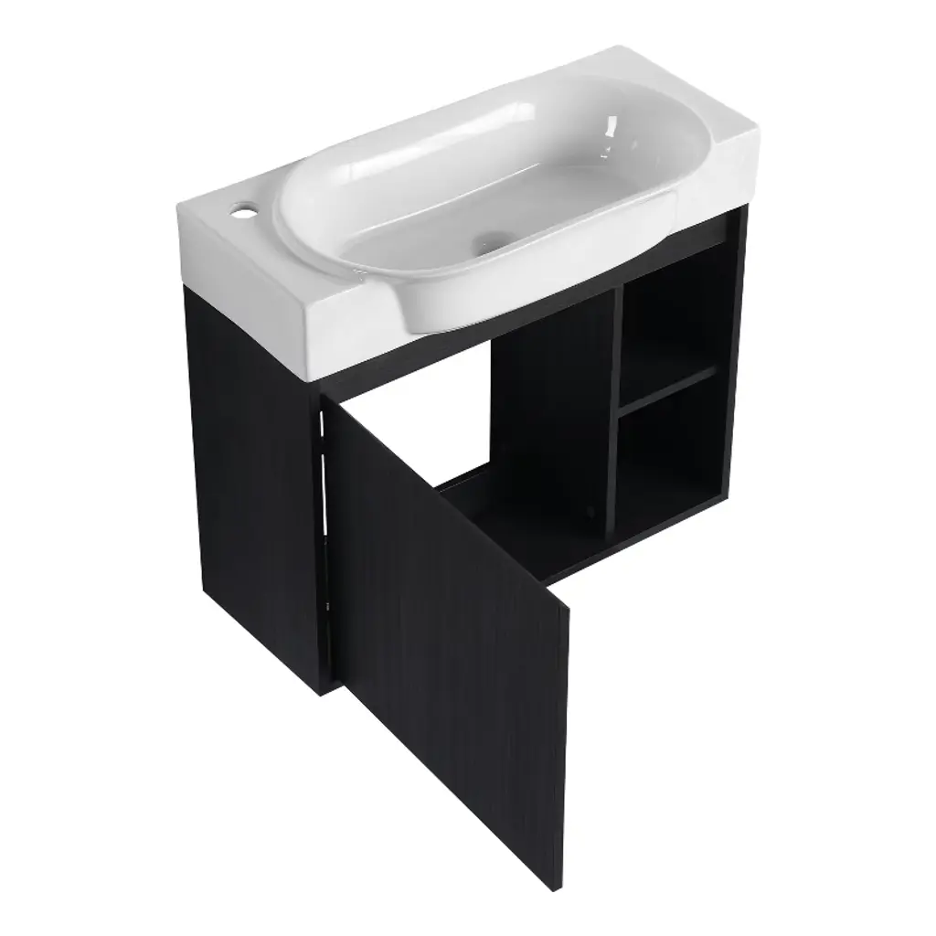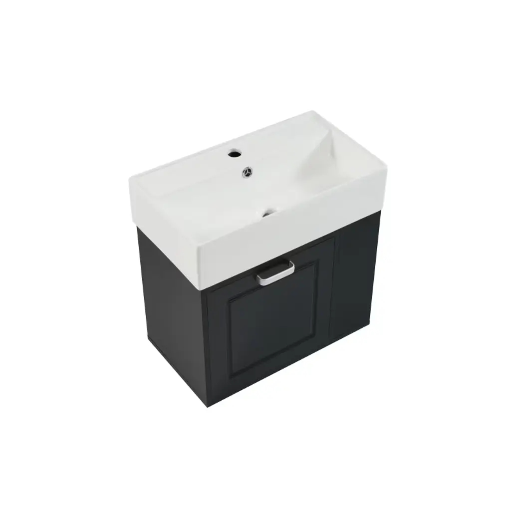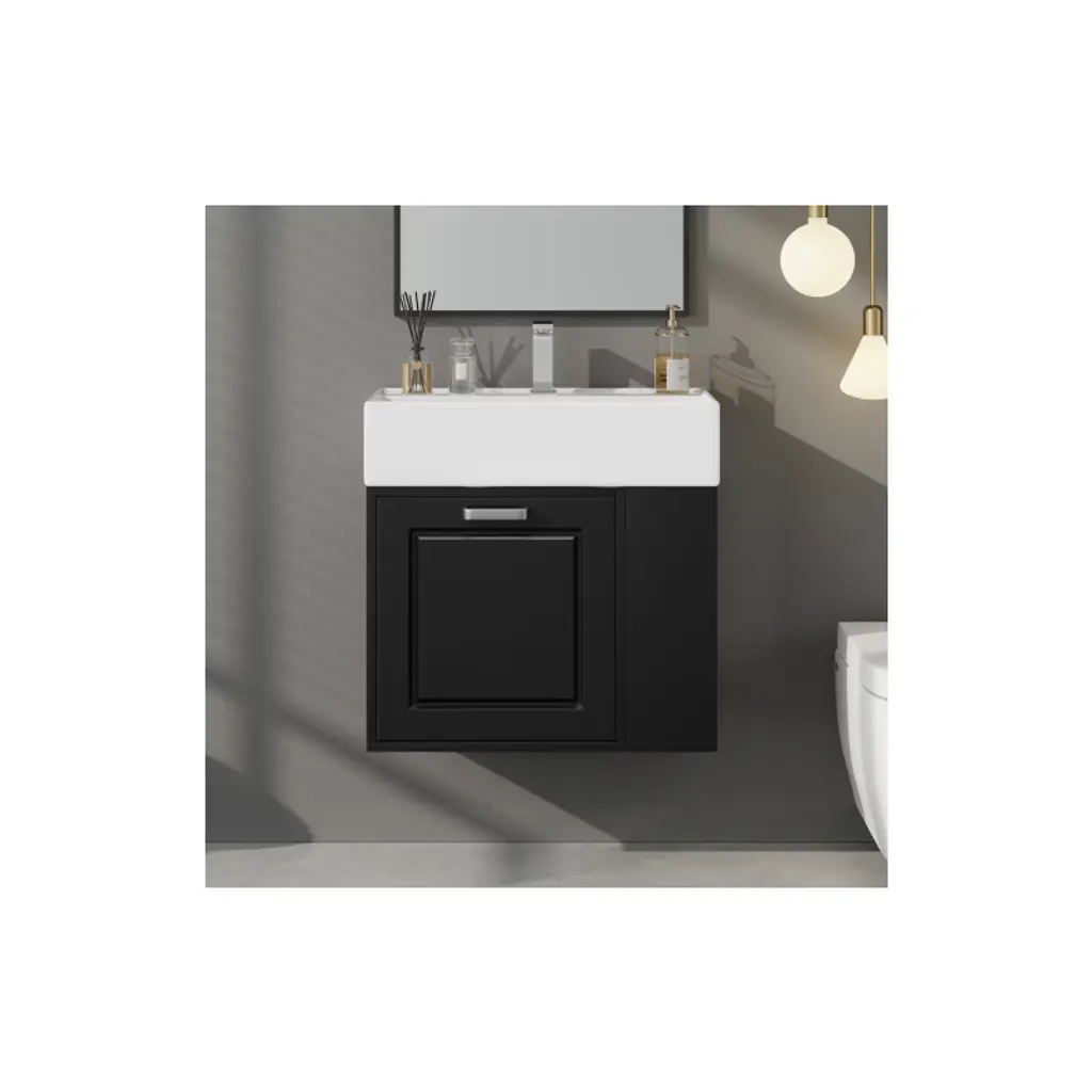 This 21.8-inch wall-mounted floating bathroom cabinet showcases a minimalist yet luxurious style. Its sleek design saves space and adds a touch of elegance to any bathroom decor, seamlessly blending aesthetics with functionality.