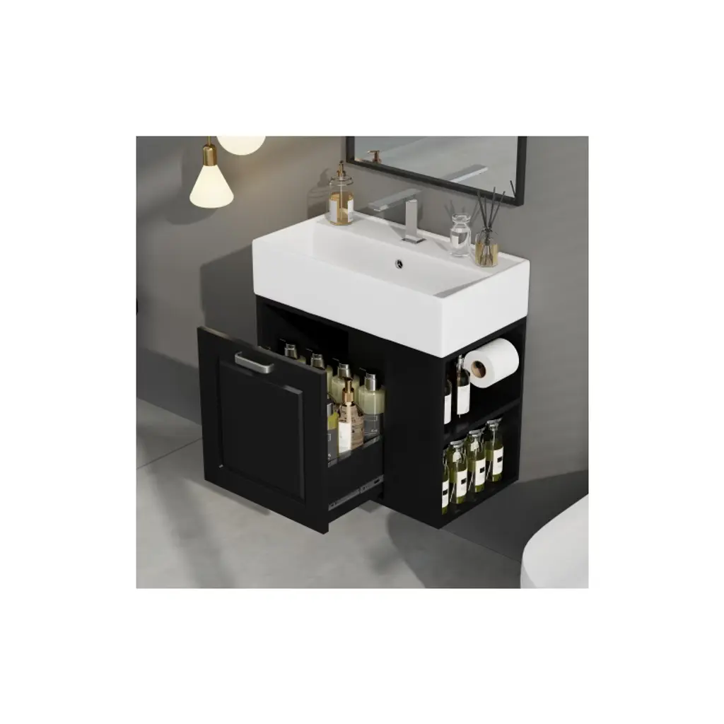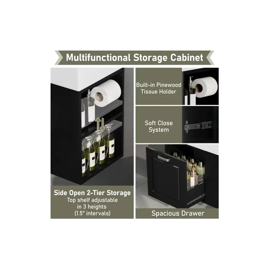 Akoasm 21.8 In. W Sink Bathroom Vanity Cabinet With One Drawer, Adjustable Shelf And Toilet Paper Holder-black