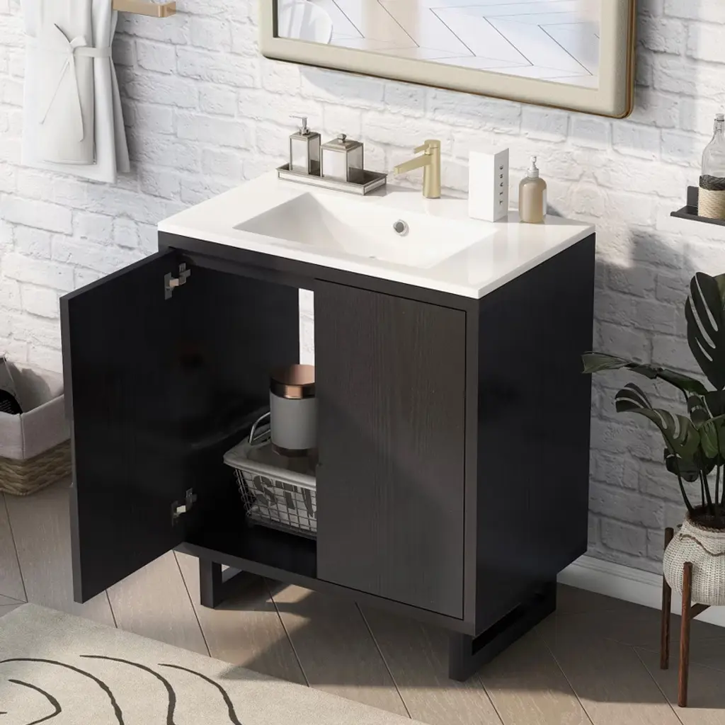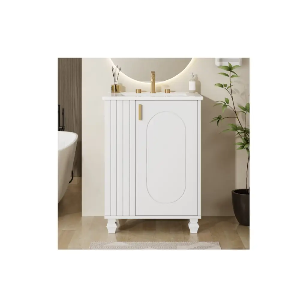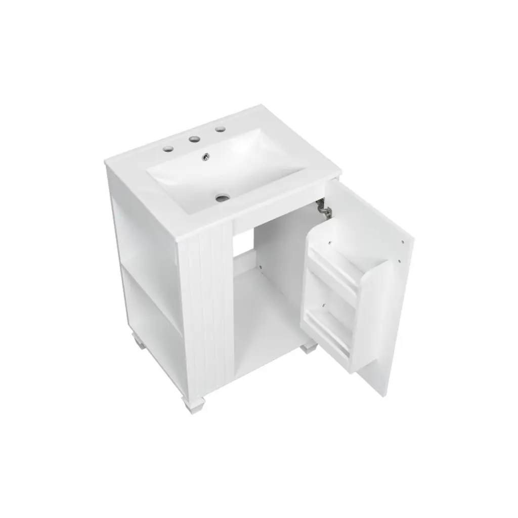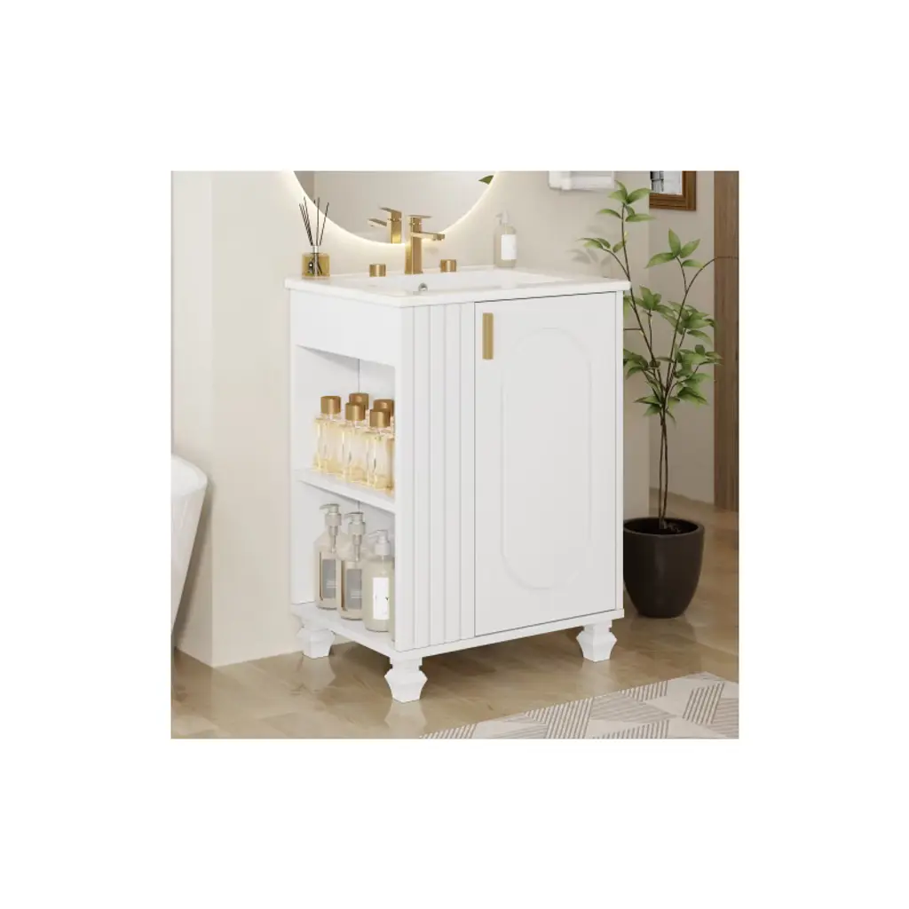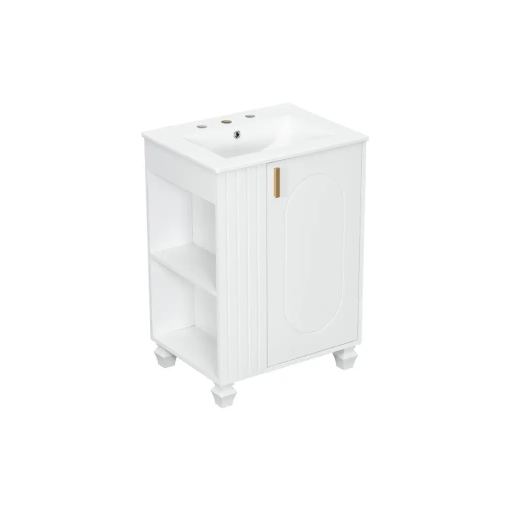 Akoasm 24 In. W Sink Bathroom Vanity Cabinet With Door Shelf, Side Open Storage And Solid Wood Frame-white