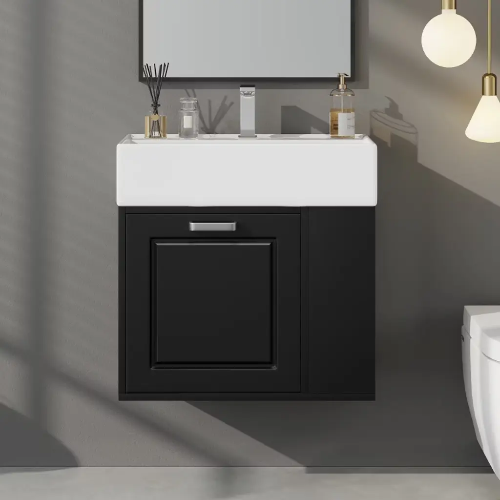 The smooth ceramic sink is stain-resistant and easy to clean, keeping your bathroom looking fresh and new. It comes with three pre-drilled faucet holes and a chrome-plated overflow drain, compatible with an 8-inch wide-mouth faucet (faucet not included).