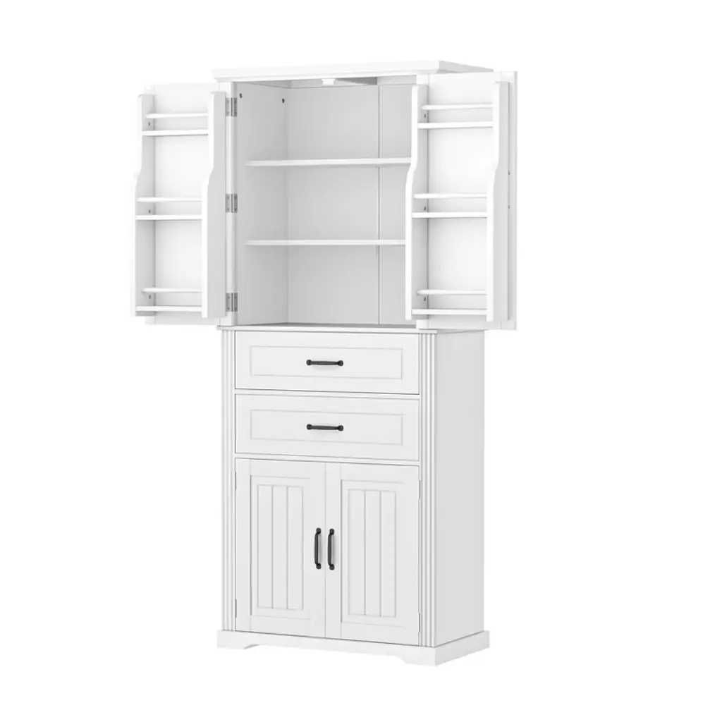 Akoasm 72.5 In. H White Bathroom Cabinet With 2 Drawers & Adjustable Shelf