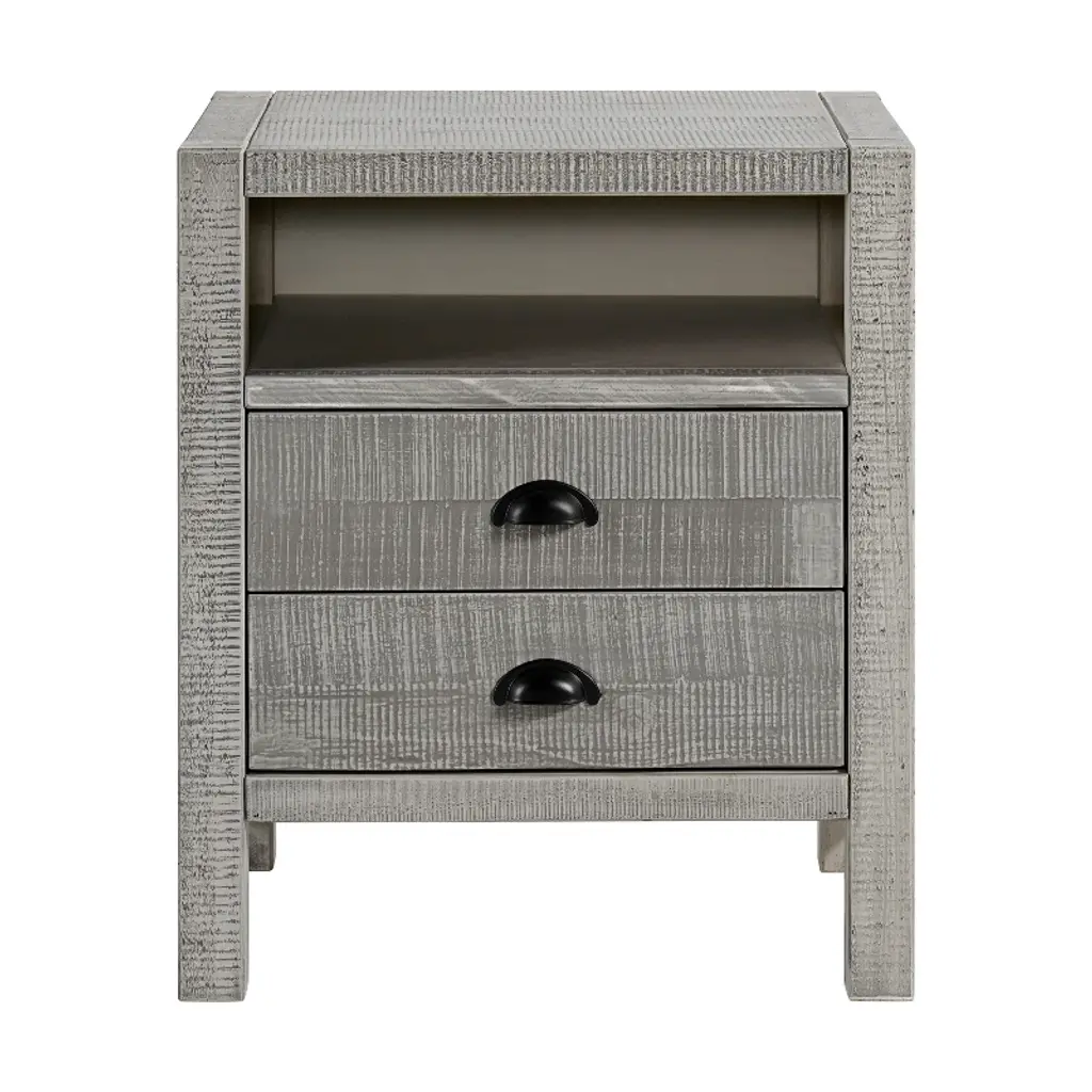 Bring style and smart storage to your child’s bedroom, guest room, or small space with the Windsor 2-Drawer Wood Nightstand. Designed in a rustic Driftwood Gray finish, this compact farmhouse nightstand blends timeless charm with everyday function. Crafted from durable pine wood, it features visible wood grain, square legs, and elegant metal drawer pulls that add warmth and character to any décor. Two full-size drawers glide smoothly on metal runners, providing hidden storage for books, toys, pajamas, or nighttime essentials. An open shelf above offers easy access to storybooks, a nightlight, or display pieces—keeping clutter at bay while maintaining a cozy bedside setup. Measuring 22" W x 17" D x 25" H, this wooden bedside table is the perfect size for smaller bedrooms, bunk beds, or shared spaces. Whether used in a children’s room, college dorm, or guest suite, the Windsor nightstand offers long-lasting durability and a space-saving design that suits any rustic or transitional home. Important: Alaterre Furniture is committed to providing the consumer with the absolute best price and value on all of our products. Note: This is an exclusive product of Alaterre Furniture and only Nightstands by Alaterre Furniture are guaranteed to be genuine. Avoid buying counterfeit products and transacting with unauthorized sellers. Alaterre Furniture is a registered trademark protected by U.S. Trademark law and will be vigorously defended.