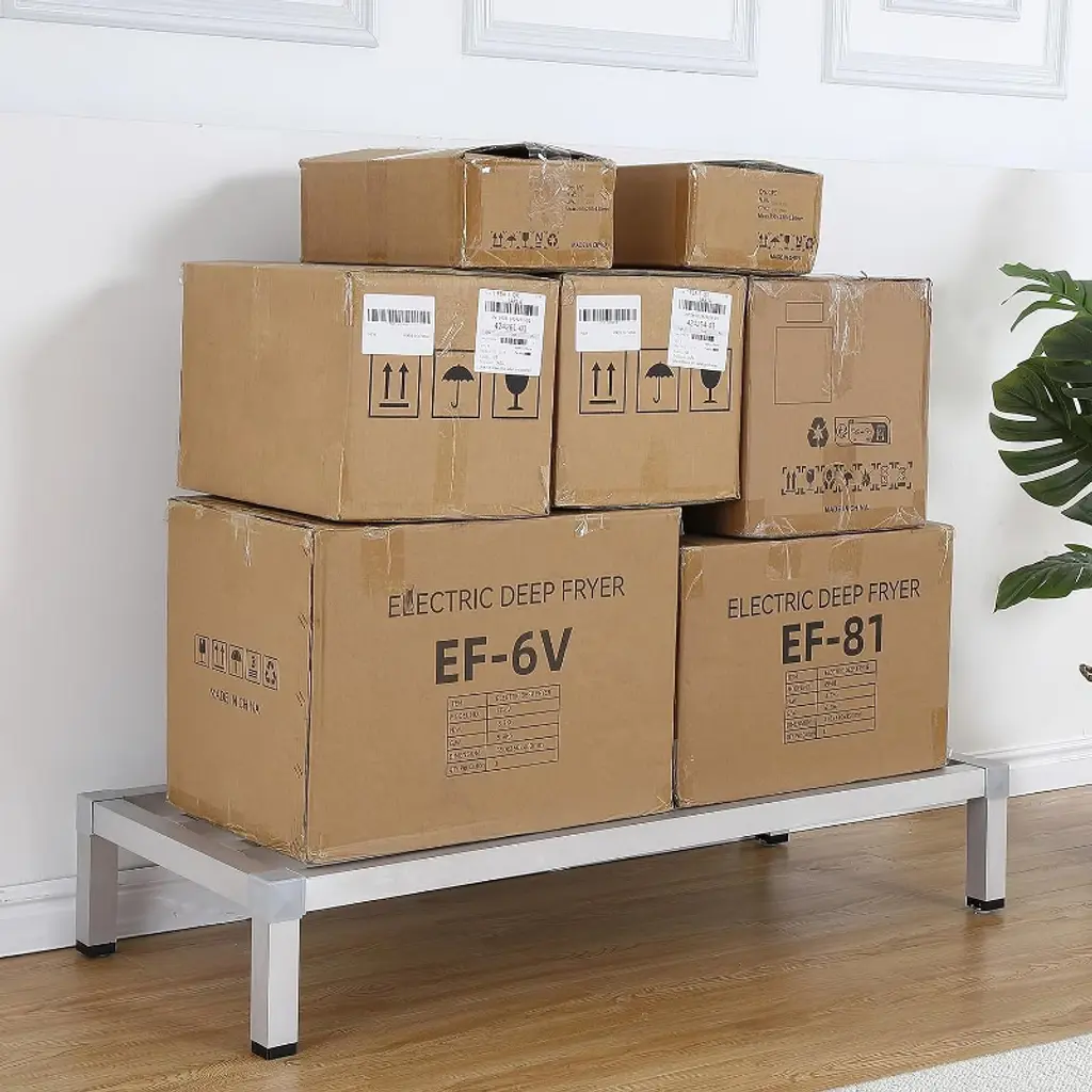 Commercial-Grade Aluminum Dunnage Rack - Heavy Duty 48"x20" Storage Shelf with 1,500LB Capacity (for Grocery Stores & Commercial Kitchens)Premium Features:Industrial Strength Construction1,500 lb weight capacity (reinforced aluminum alloy frame)48"L x 20"W x 8"H dimensions (low-profile design)Military-grade T6 aluminum resists corrosion and deformationCommercial Durability5mm thick aluminum crossbars with welded jointsPowder-coated silver finish prevents oxidation-40¡ãF to 400¡ãF temperature resistantWorkshop-Ready DesignTool-free snap assembly (sets up in <1 minute)4 non-marking rubber feet (1" thick, 70A hardness)Stackable configuration (up to 3 units high)Multi-Industry ApplicationIdeal for:Commercial kitchen ingredient storageWarehouse parts organizationSupermarket produce displayAutomotive shop suppliesSafety & StabilityAnti-slip grid surface (1/2" diamond pattern)Seismic-rated frame stabilityRounded edges for injury preventionTechnical Specifications:Material: T6 aluminum alloyLoad Capacity: 1,500 lbs (evenly distributed)Frame Thickness: 5mmWeight: 18.7 lbsDimensions: 48"L x 20"W x 8"HStack Height: Up to 24" (3 units)Certifications: NSF, OSHA compliant