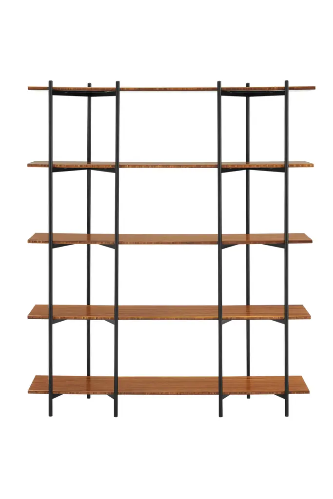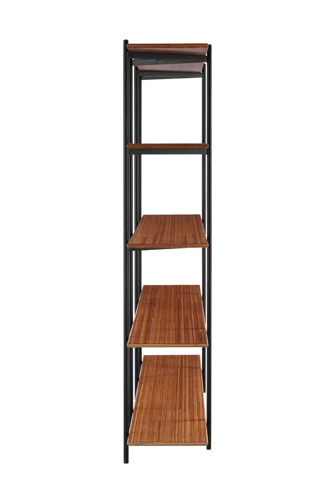 Transform your office or spare corner into a sophisticated library with the Amber Bamboo Shelf from Greenington Studio Plus. Featuring a functional and elegant design, this industrial chic leaning shelf offers five sturdy bamboo shelves in a nature-inspired Amber finish. Securely attach it to the wall and save space while adding an exclusive touch to your decor.