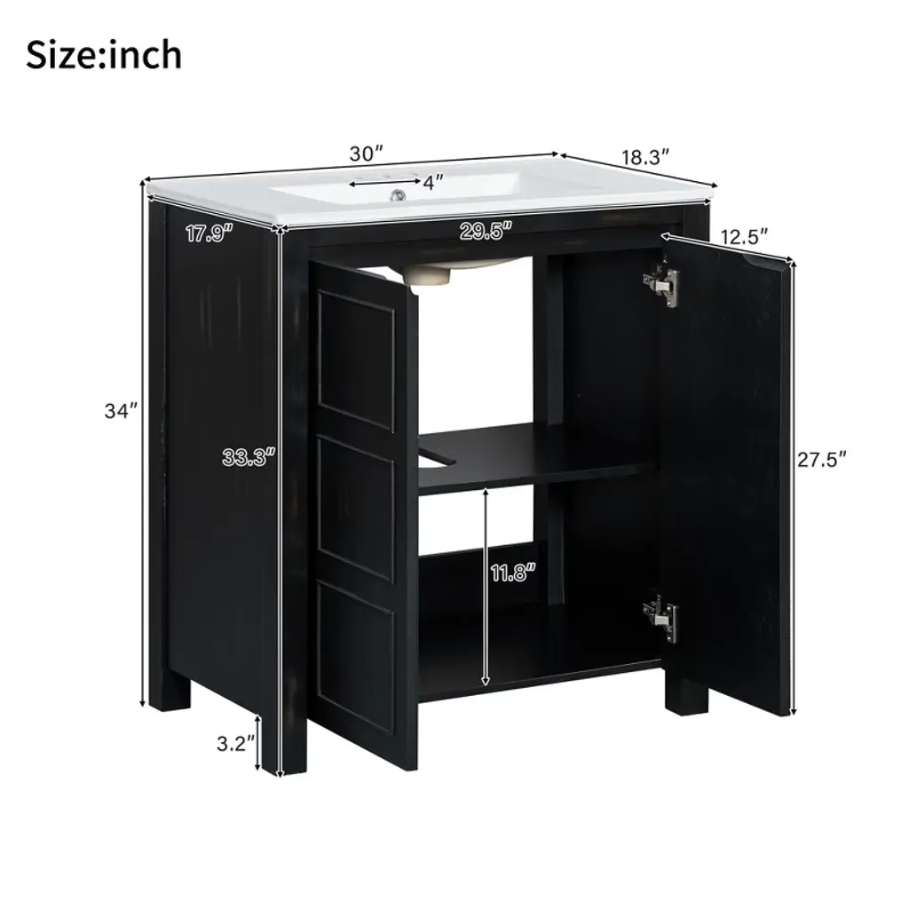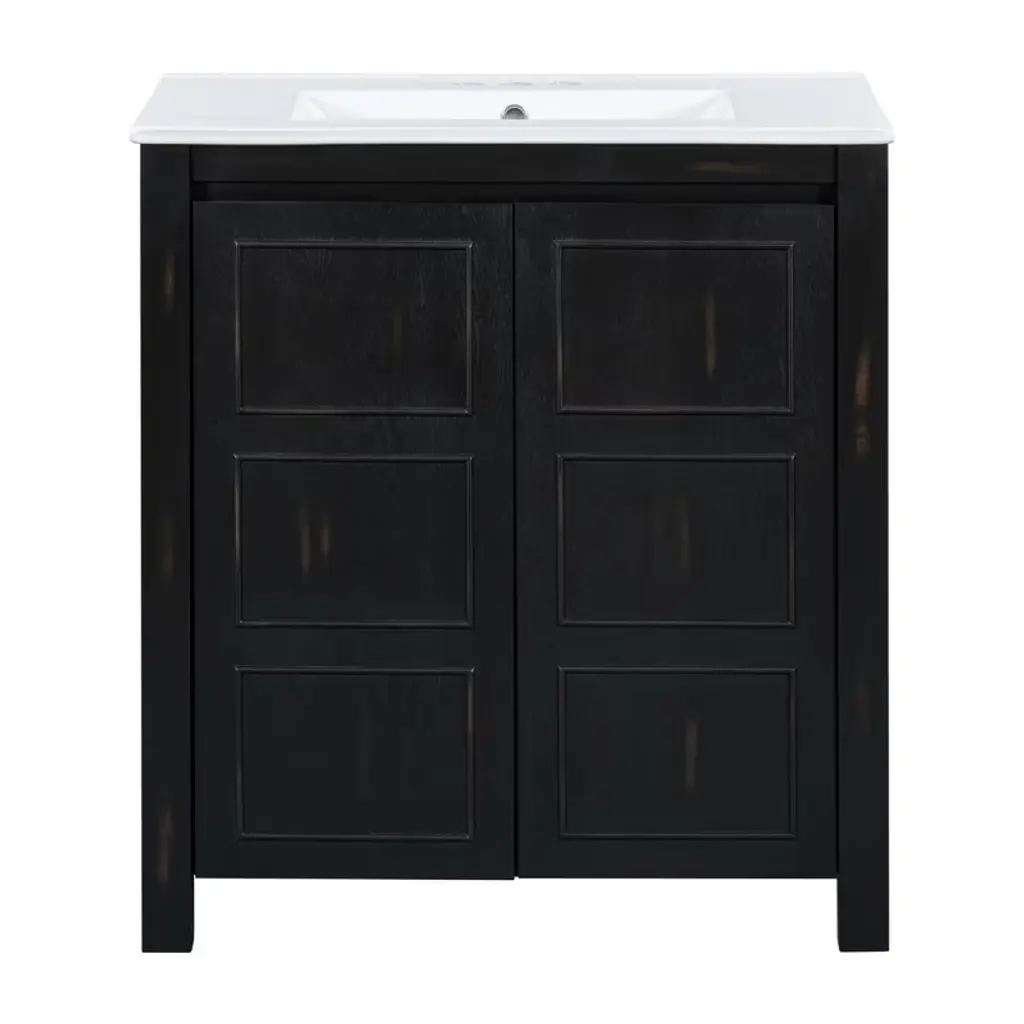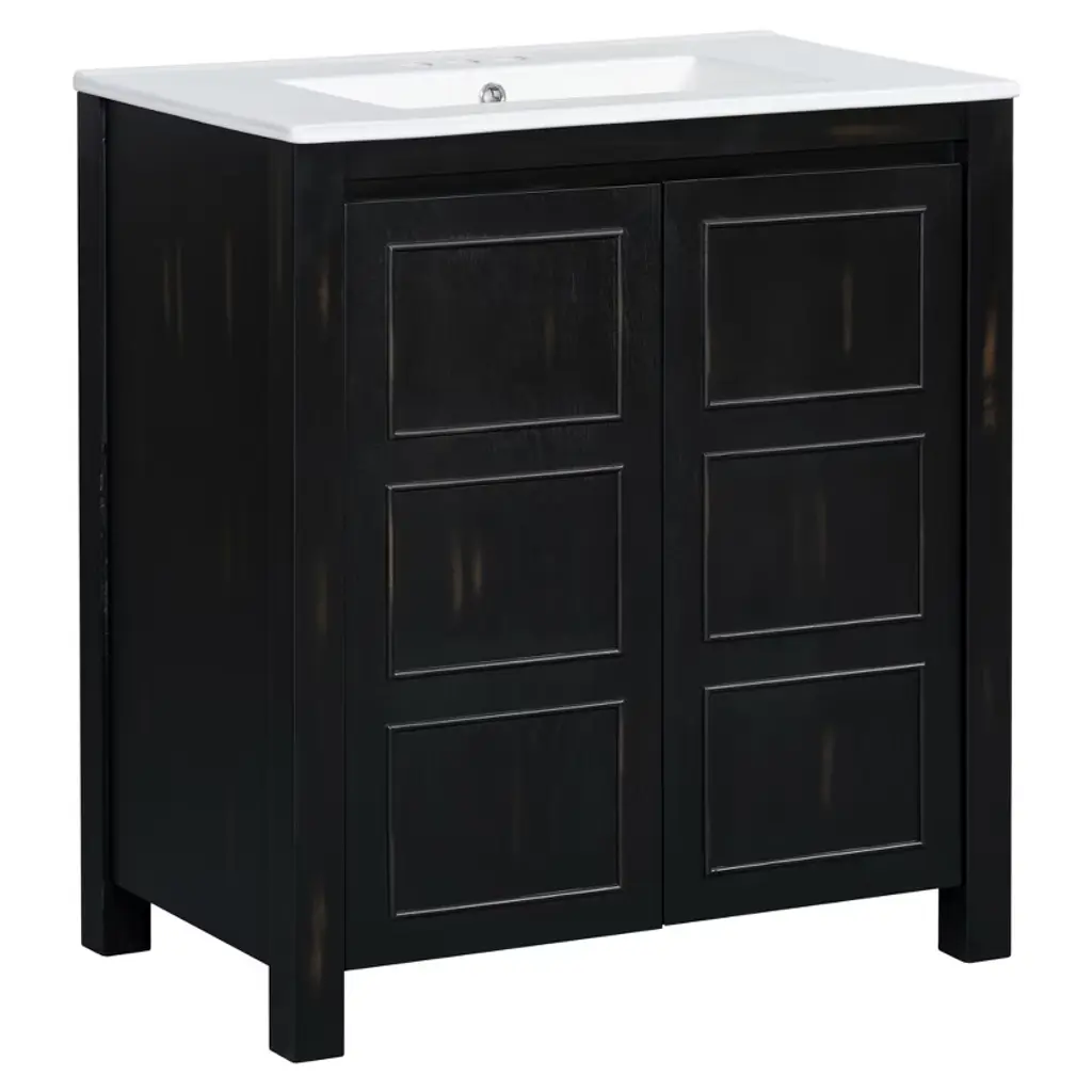 Aprilsoul 30" Rustic Bathroom Vanity With Ceramic Sink, Soft-close Doors & Adjustable Shelf, Espresso Storage Cabinet,black