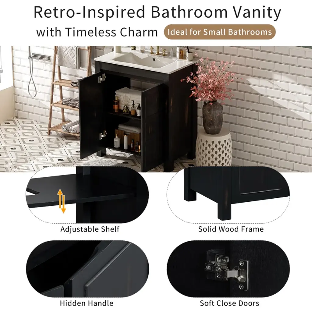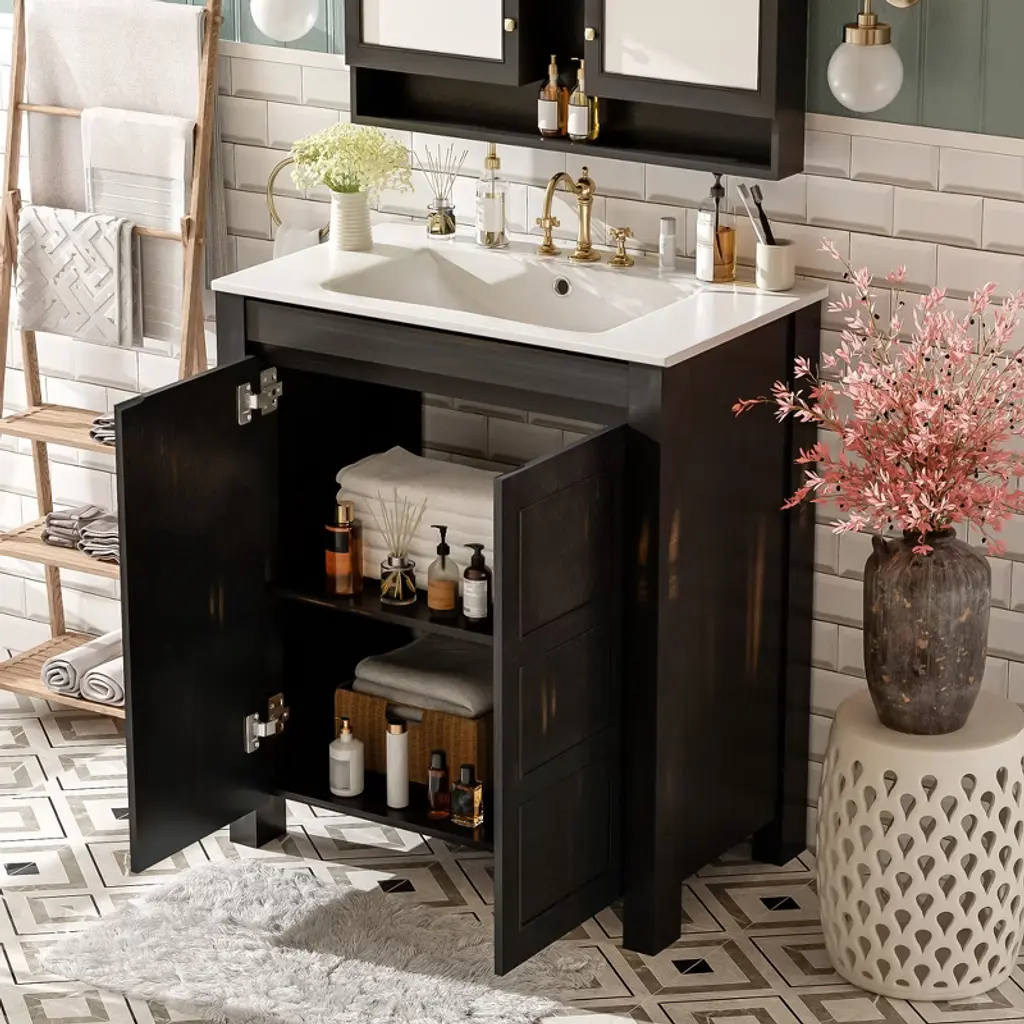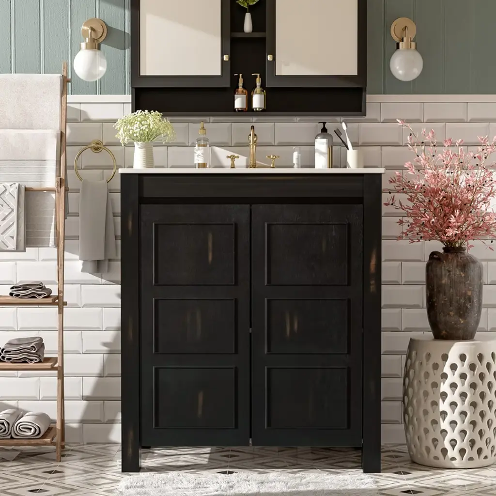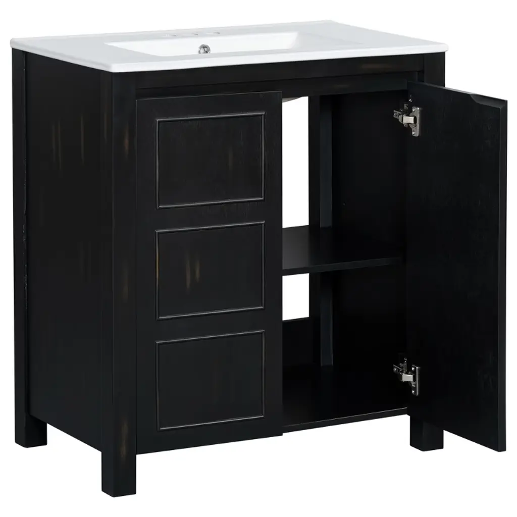 Aprilsoul 30" Rustic Bathroom Vanity With Ceramic Sink, Soft-close Doors & Adjustable Shelf, Espresso Storage Cabinet,black