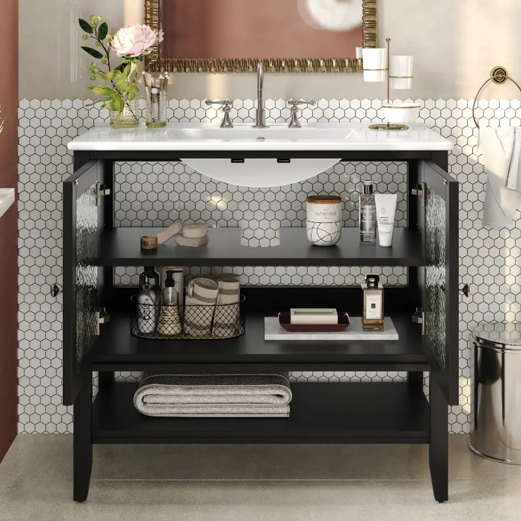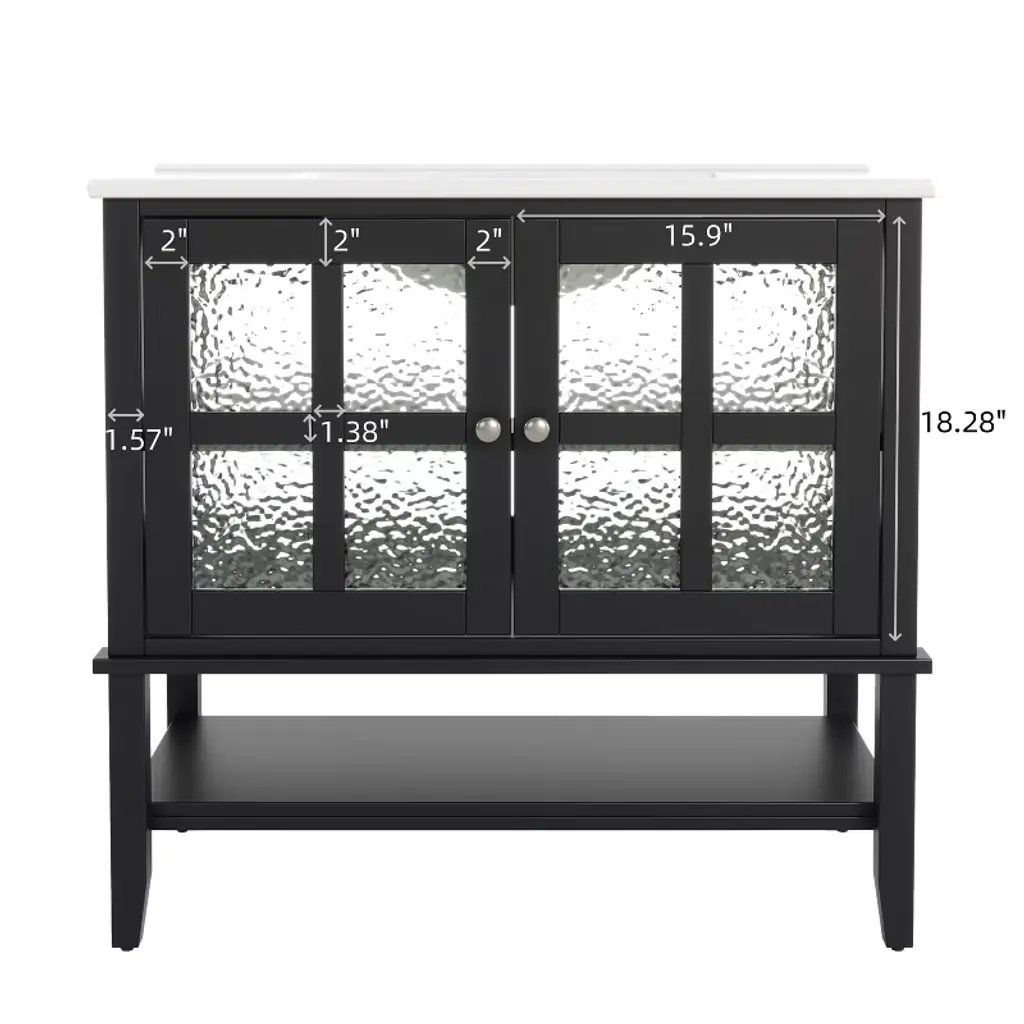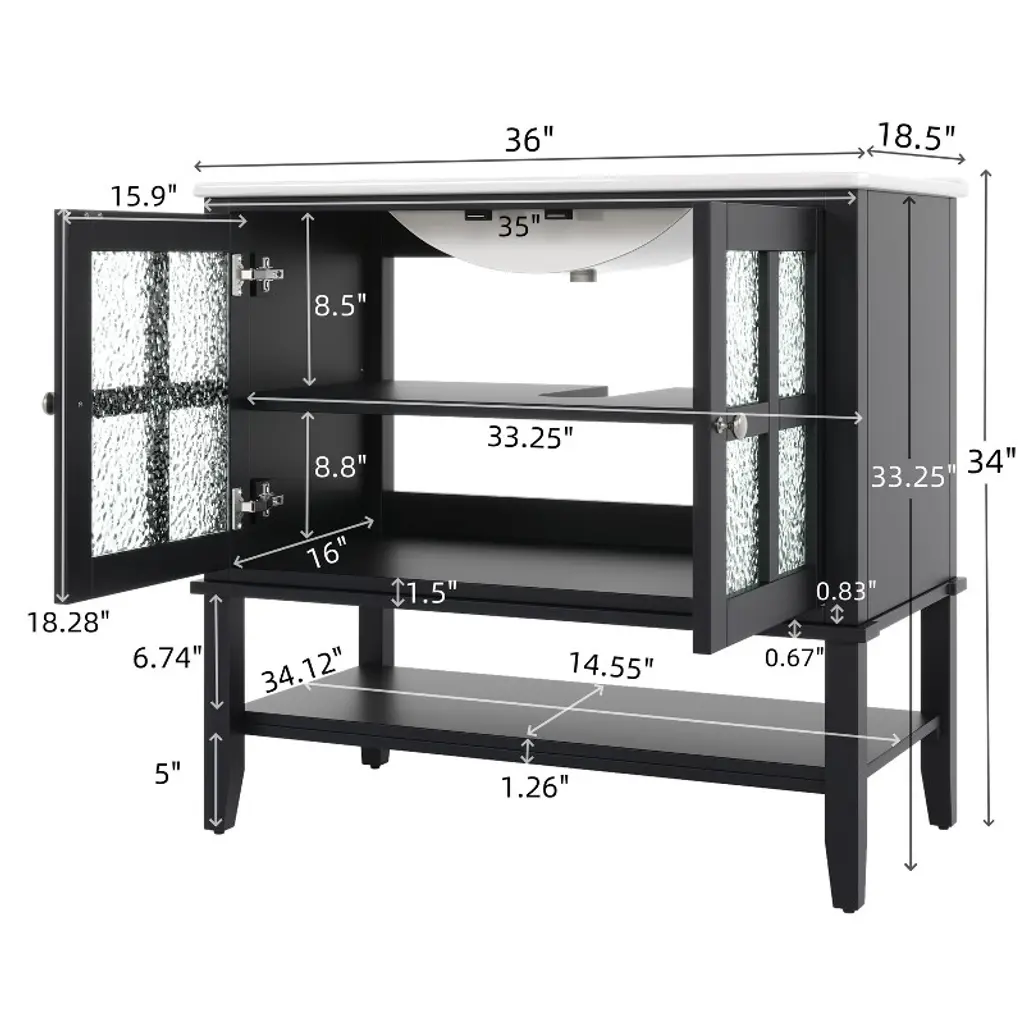 Aprilsoul 36" Bathroom Vanity With Ceramic Sink, Bathroom Vanity With Adjustable Shelf And Open Shelf, Black