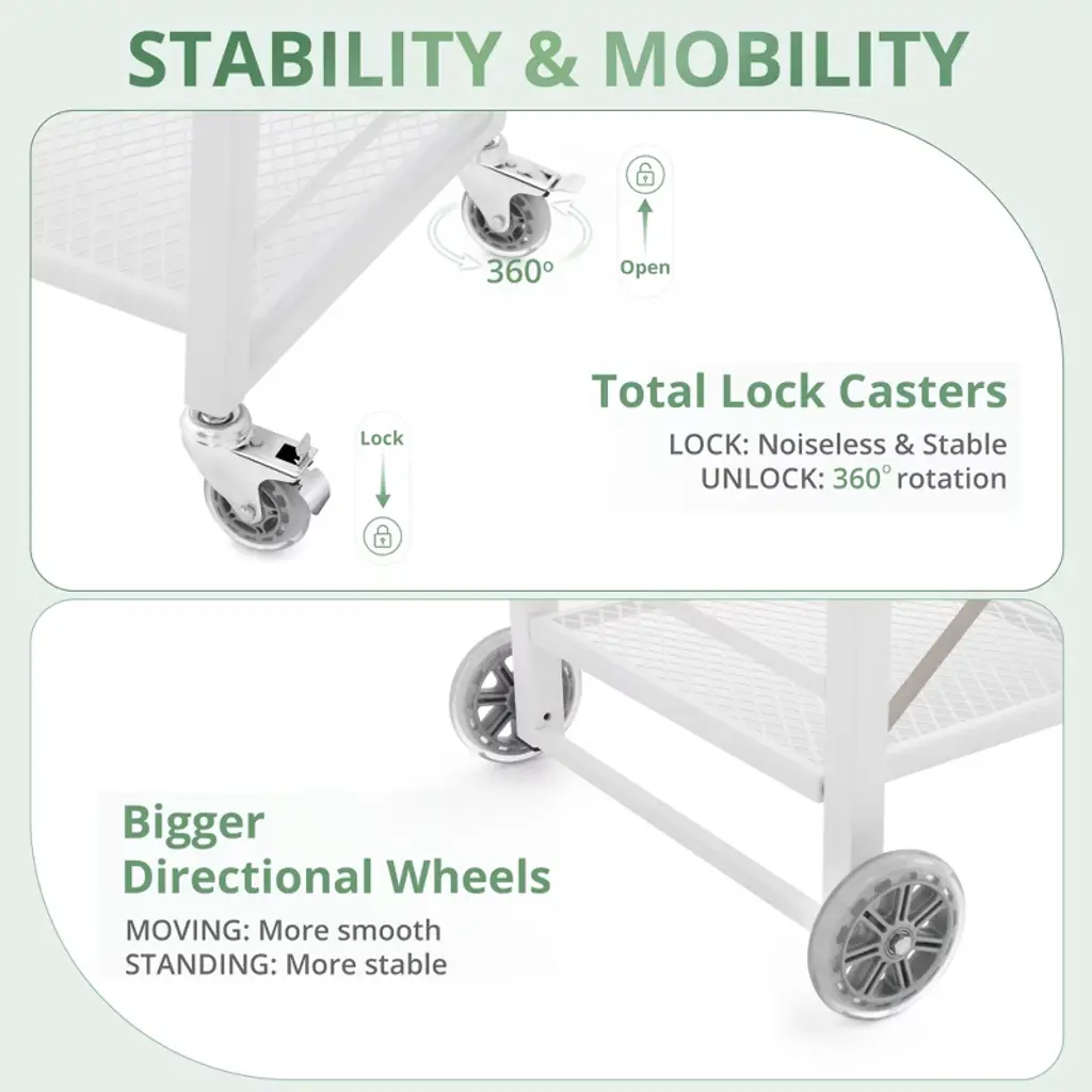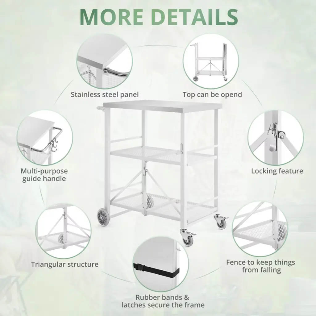 90% Pre-assembled Folding Design: This portable grill table can be unrolled in 10 seconds, placed in a narrow gap when not in use, and unrolled to provide ample storage space for various items and cutlery Lock Casters Wheels: The upgraded 360¡ã wheels provide smooth indoor and outdoor movement, with locking brakes to secure the cart in place;Two large rubber directional wheels enhance stability and flexibility, gliding silently with minimal effort Size Detail: Overall size of pizza oven table 18.5"D x 27.6"W x 33.8"H Stainless steel trolley has superior strength and stable Mutifl-Function: Such as food prep table, food serving table, BBQ grilling table, potting table, work table, etc; The ergonomic pusher design saves your strength and allows you to spend the least effort to do the heaviest transportation Assembled: Our products come with detailed instructions and installation videos, as well as all the necessary tools and screw fittings for everything you need; This comprehensive support saves you time and makes installation easier and more efficient