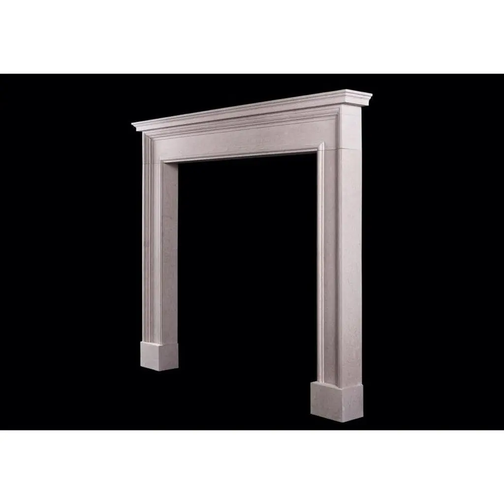 An architectural bolection fireplace with moulded shelf. Shown in limestone, but could be manufactured in marble if required. English, modern. Additional information:Shelf Width: 1441 mm / 56 ¾"Overall Height: 1251 mm / 49 ¼"Opening Height: 1040 mm / 41"Opening Width: 1038 mm / 40 ⅞"Depth Of Shelf: 151 mm / 6"Overall Plinths: 1350 mm / 53 ⅛"
