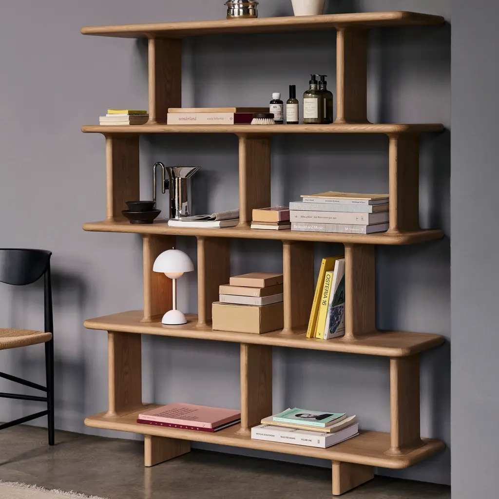 The Archivo Shelf series brings a playful vibe with its unique compartments and flowing curves. Originally designed for Jaime Hayon's home, the shelves are made from solid oak, oak veneer, and MDF for durability. Available in Sky Blue, Black Grey, and Oak finishes, reflecting vibrant and classic styles. Delivered flat-packed for assembly, the shelves are crafted with FSC-certified wood, supporting sustainability. These shelves provide practical storage while showcasing Jaime Hayon's signature creative touch.
