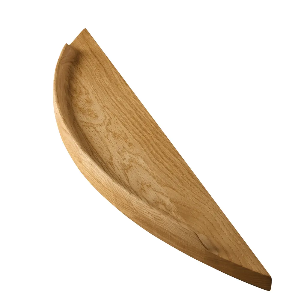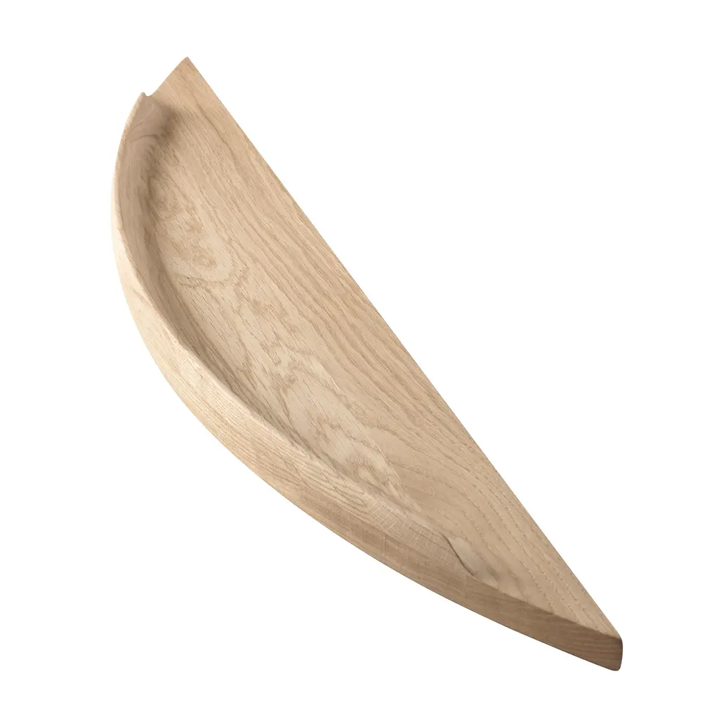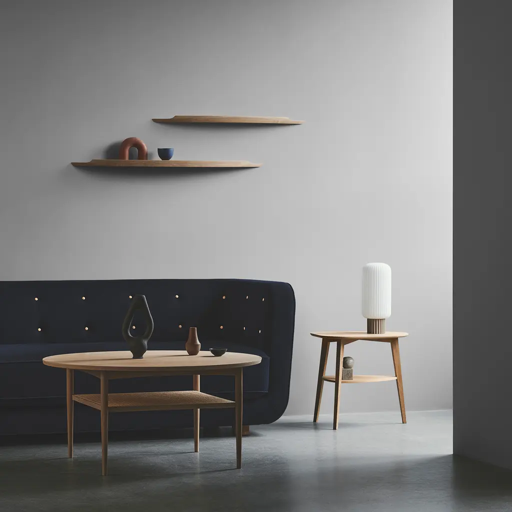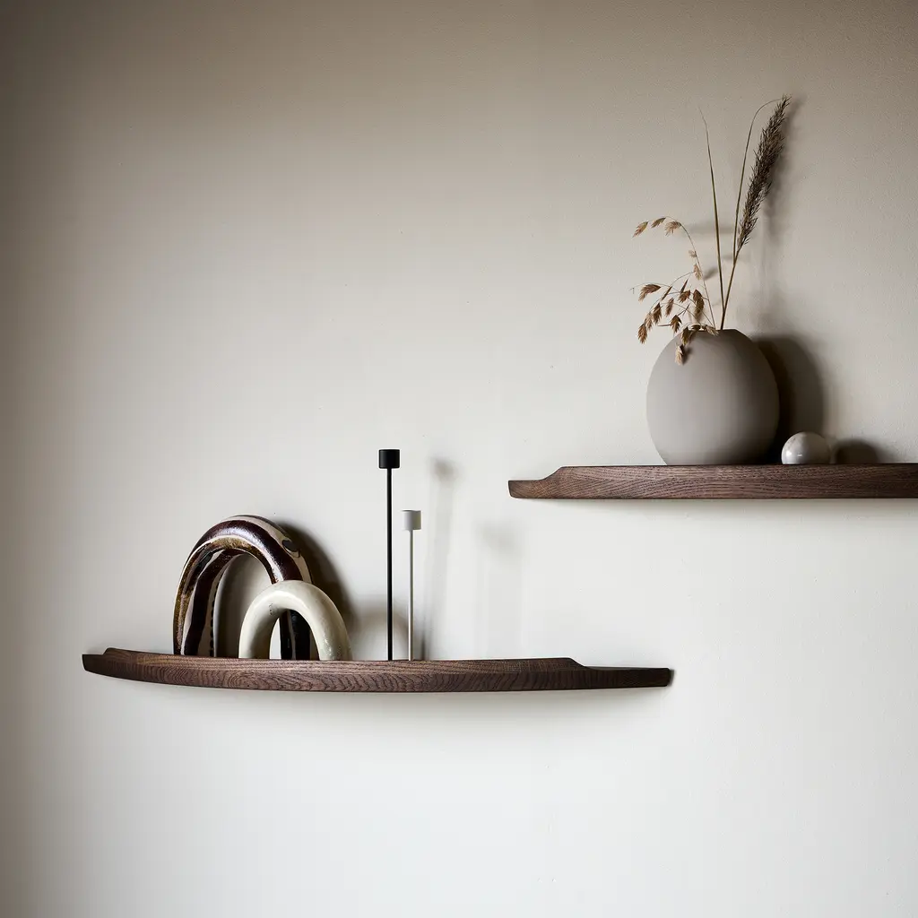 Danish furniture design traditions are gracefully reinterpreted in the Arcus Shelf, Medium. Created by Nanna Aakjær Svendsen as an homage to her grandfather’s classic furniture designs, this shelf features an elegant chamfered edge and a curved silhouette. The organic shape of Arcus makes it perfect as a functional object that also serves an aesthetic purpose. Installed on a wall in a living room, bedroom or home office, it adds a refined accent to any décor while presenting decorative objects, books, vases and more in an elegant way. Crafted by hand from solid oak, the medium version of the Arcus shelf comes with natural, smoked, or white oiled finishes. Small and large versions of this shelf are also available.