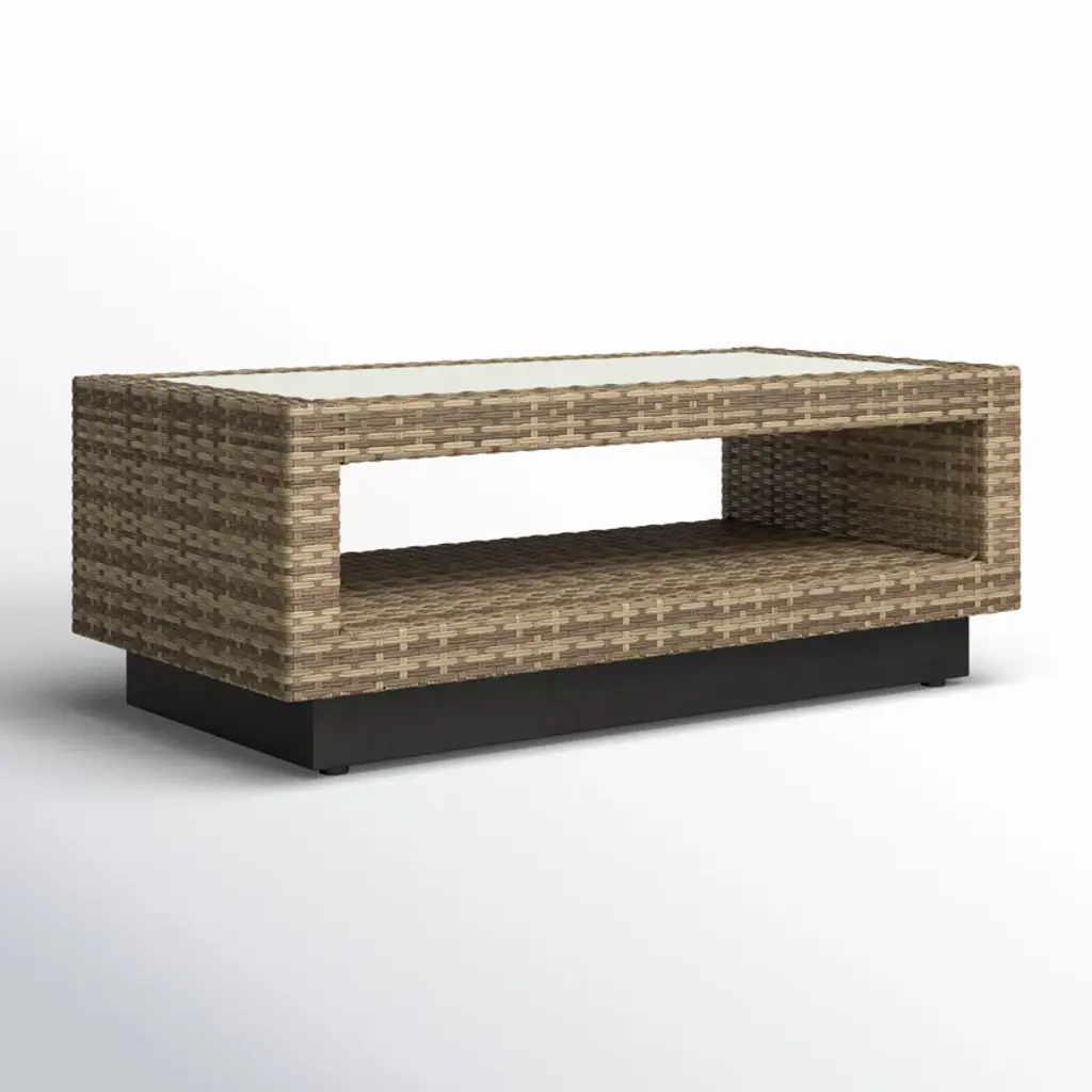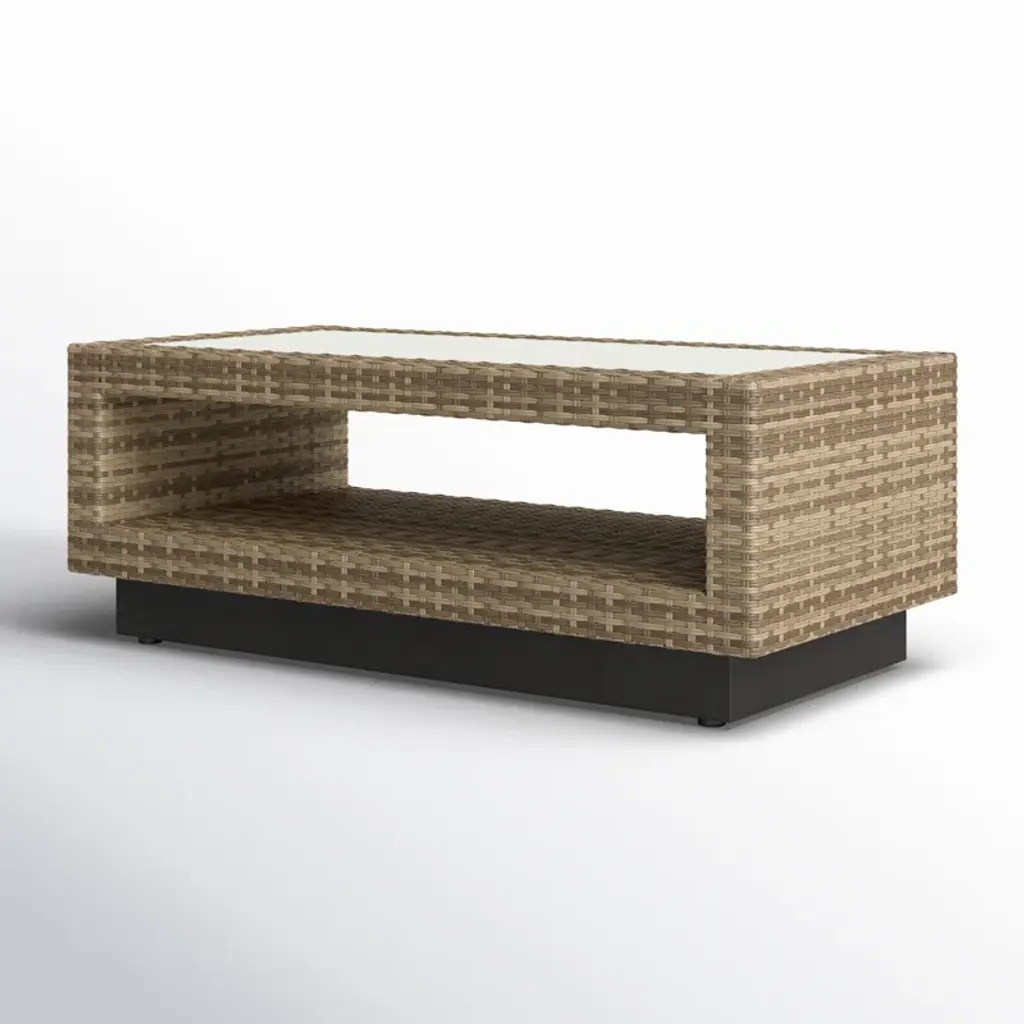 Arlette Wicker Rectangular Outdoor Coffee Table With Shelf