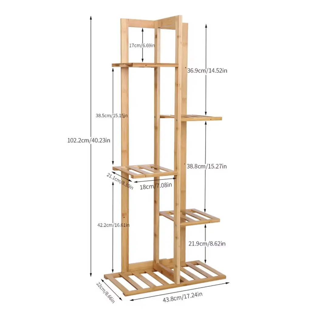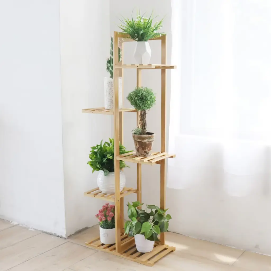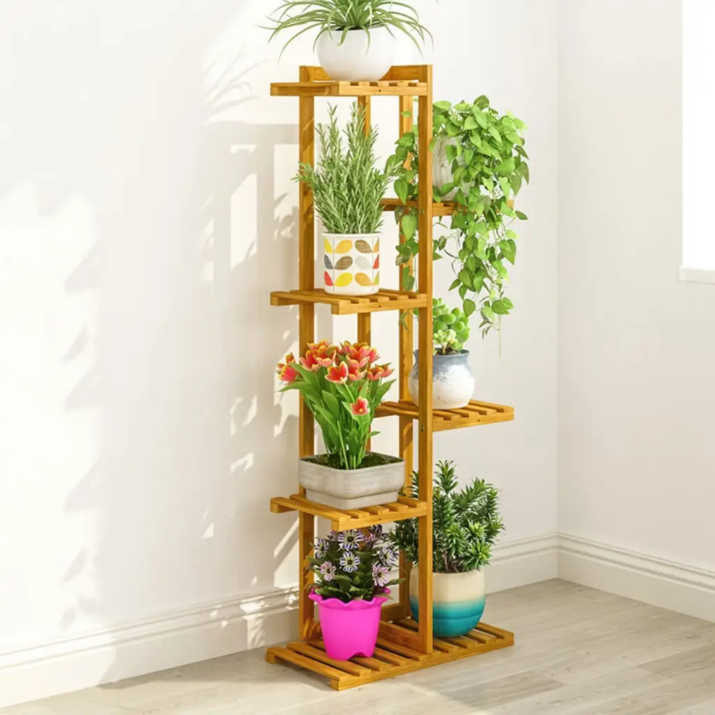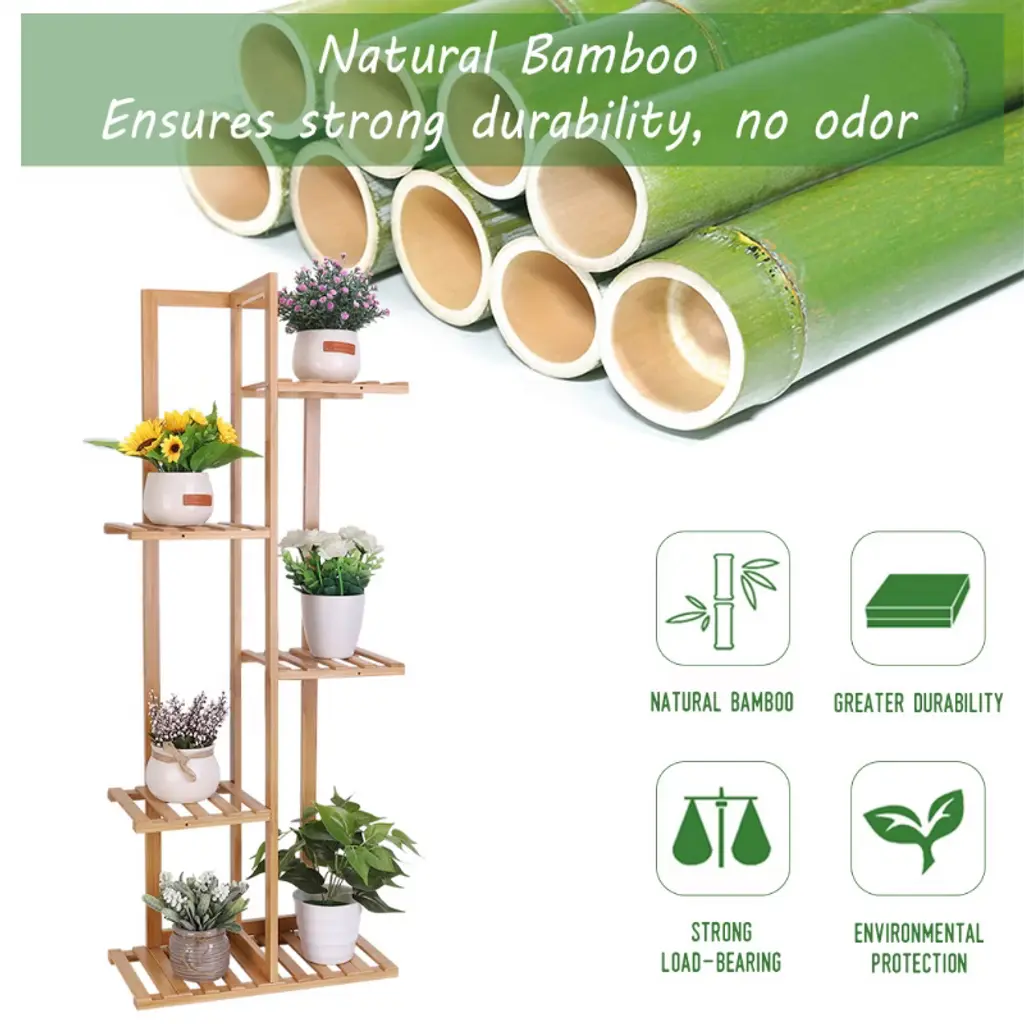 Elevate your greenery game with our Eco-Friendly Bamboo Multilayer Plant Stand! Crafted from durable, renewable bamboo, this T-shaped shelf combines space-saving design with 5/6-tier versatility, perfect for indoor/outdoor use. Showcase vibrant plants, succulents, or bonsai while its hollow-out layers ensure optimal drainage and airflow. Beyond plants, use it as a stylish storage rack for photos, trophies, or decor. Lightweight yet sturdy, it supports up to 45kg/50kg (small/large) and raises plants to sunlight for healthier growth. Easy assembly with a guide. Choose from two sizes to fit any corner. Transform your space into a lush oasis—order now! 🌱✨