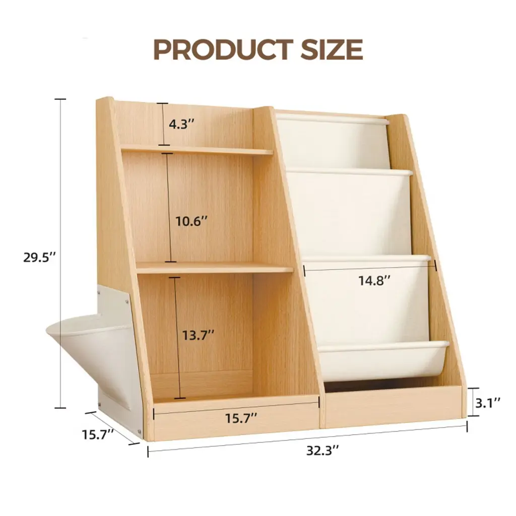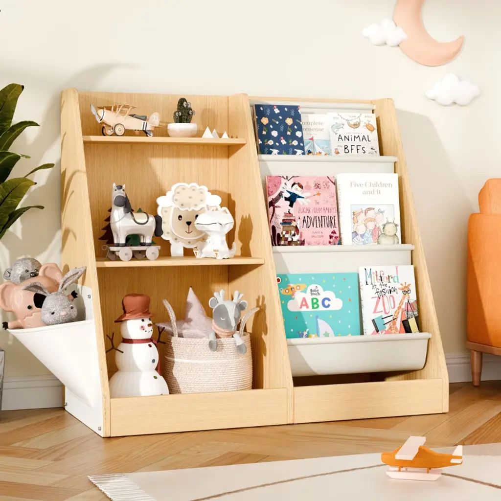 Azl1 Life Concept Kids Bookshelf Book Shelf Sling Bookcase Side Pocket Baby Toy Organizer Nursery Playroom Toddler Childrens, Beige, 32.3"*15.7"*29.5"