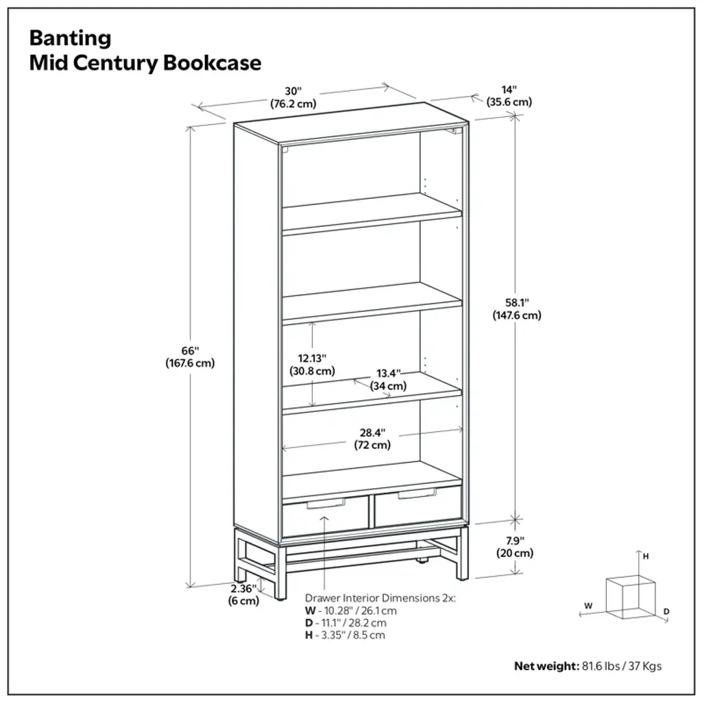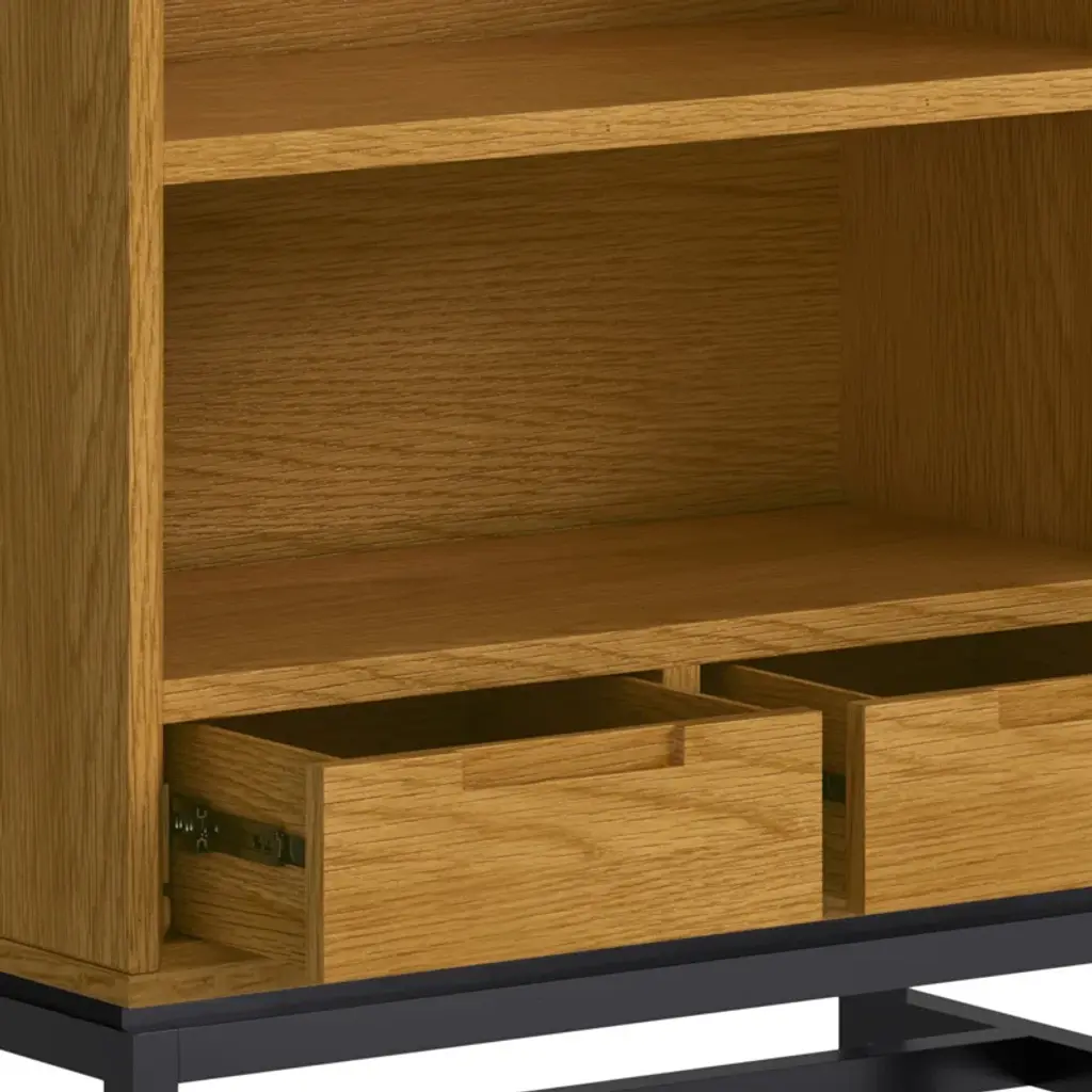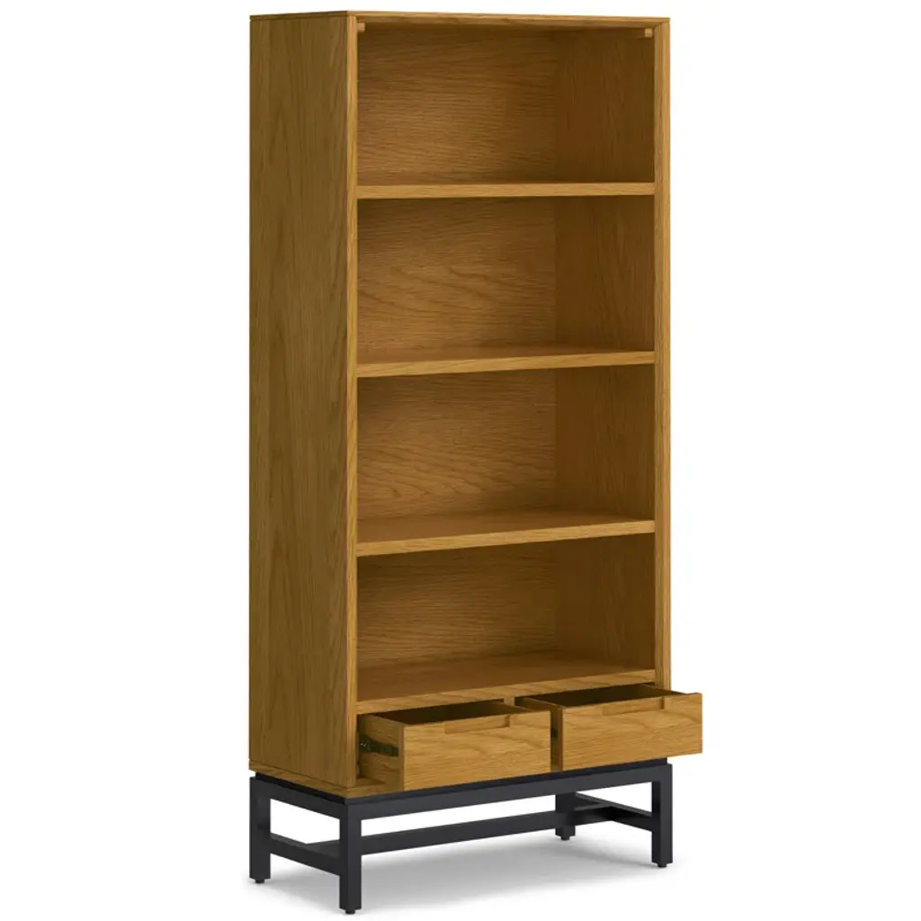 Banting 30"w Solid Wood 4 Shelf Industrial Bookcase With 2 Drawers, Adjustable Shelves, And Metal Base