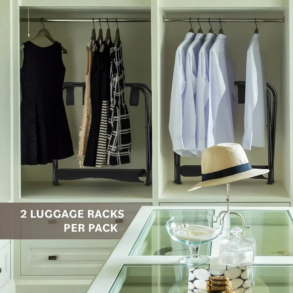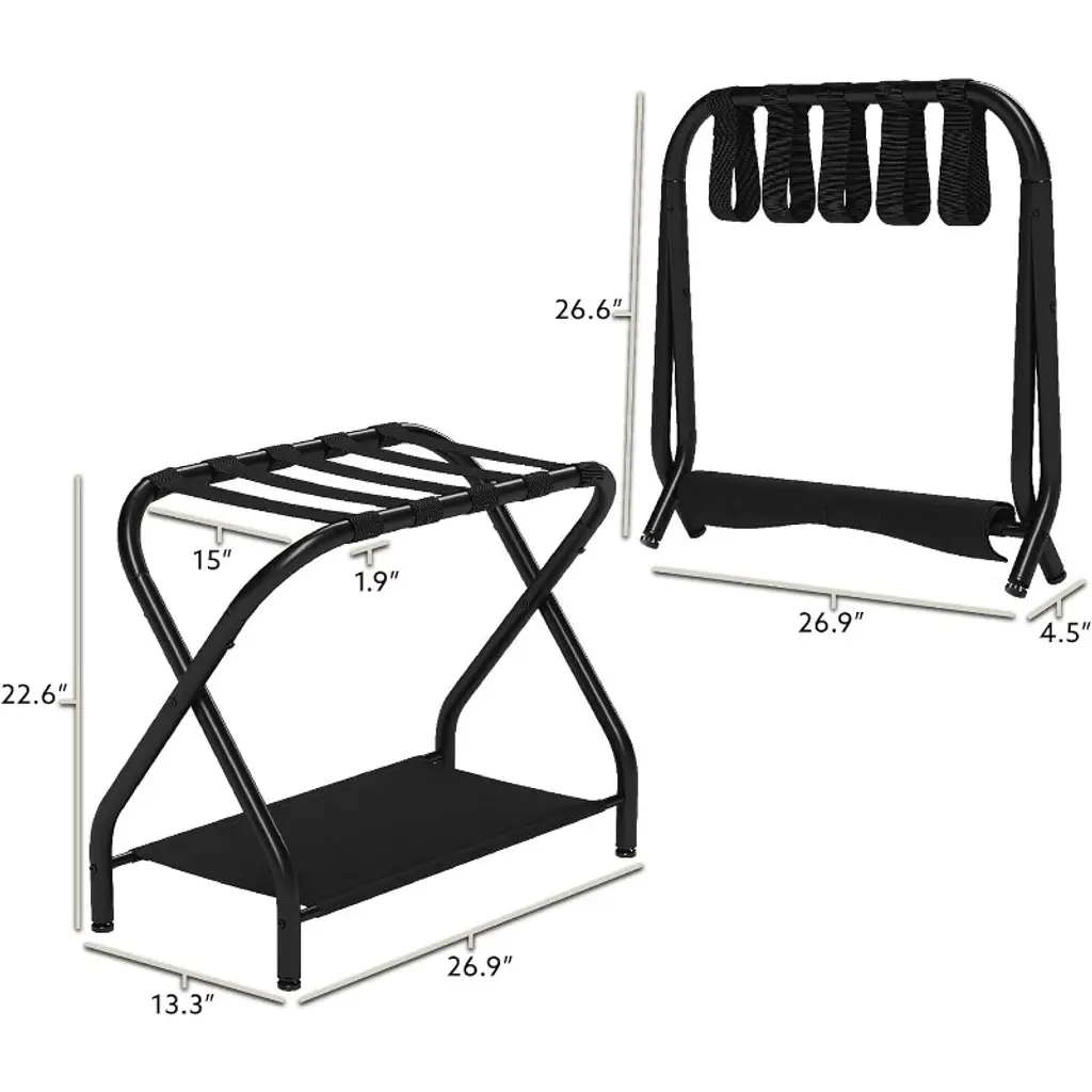 Bartnelli 2-pack Premium Collapsible Metal Luggage Rack With Folding Storage Shelf And Durable Nylon Straps