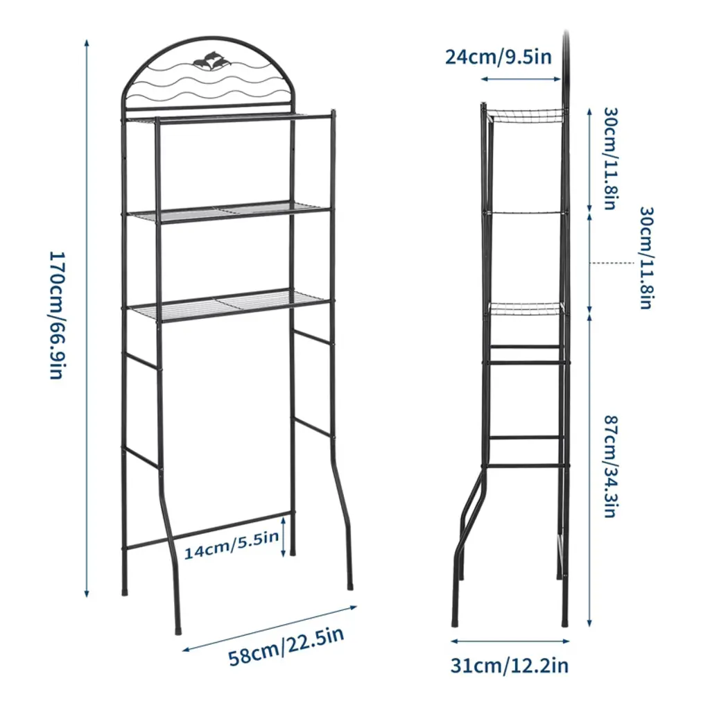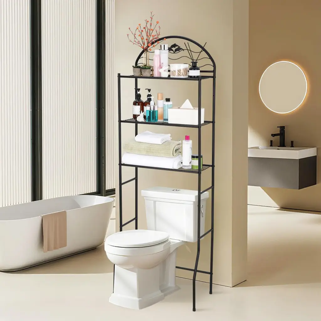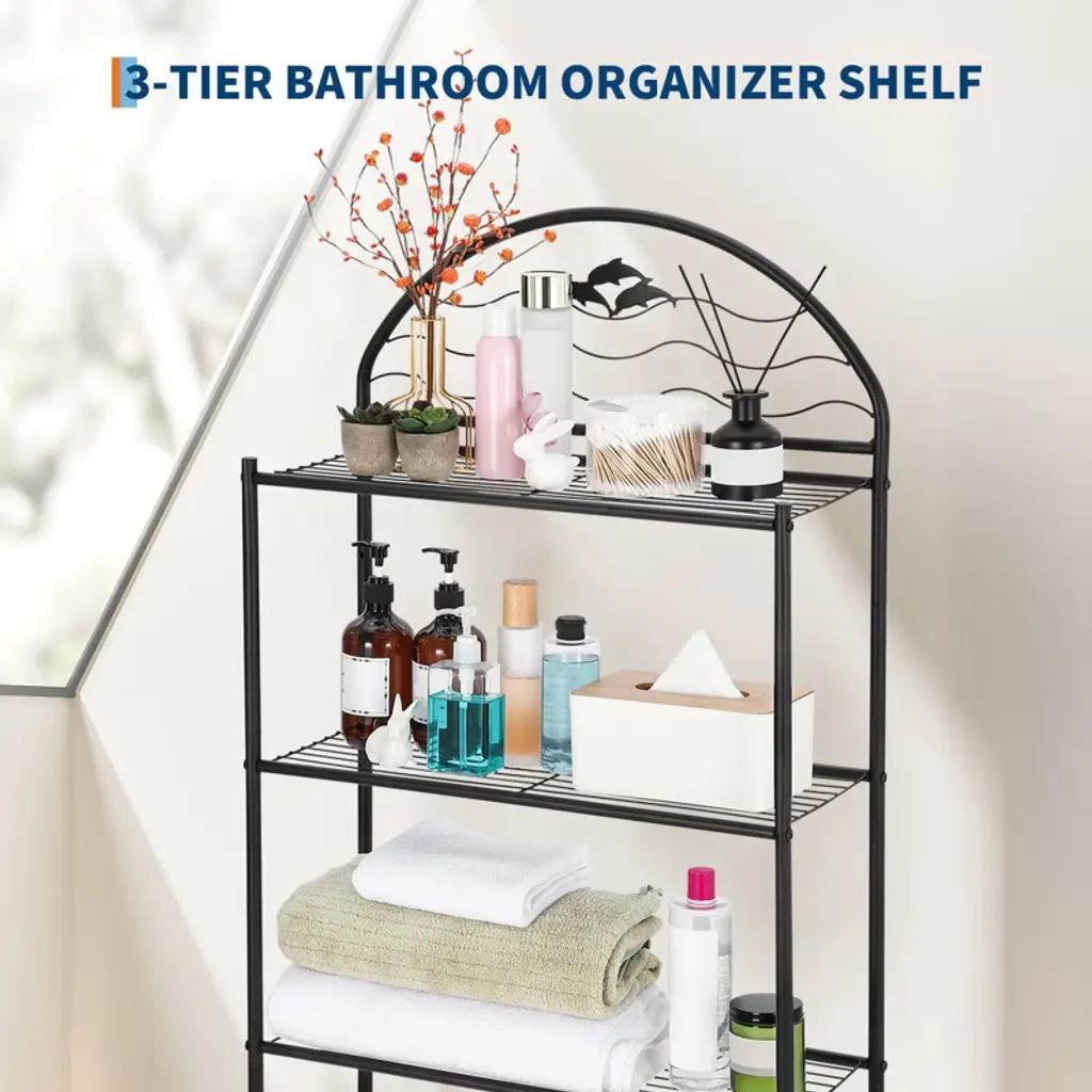 1.Heavy-Duty Rust-Resistant Construction: Built to Withstand Bathroom Humidity Crafted with a sturdy iron frame and a protective anti-rust coating, this over-toilet shelf is engineered to thrive in damp bathroom environments. The robust metal structure resists daily wear, humidity, and corrosion, ensuring no wobbling, bending, or rust buildup over time. Whether in a steamy shower room or a small apartment bathroom, it stays strong and stylish, providing reliable storage for years¡ªno need to worry about degradation from moisture or frequent use. 2.Slim Design for Small Spaces: Maximizes Unused Vertical Area Measuring 23.03¡±L x 9.65¡±W x 66.93¡±H, this compact bathroom organizer is perfect for tight spaces like small apartments or cozy bathrooms. It transforms the often-wasted area above the toilet into functional storage, freeing up precious floor space for other essentials (like a laundry basket or scale). The slim profile ensures it fits comfortably behind most standard toilets, keeping toiletries, towels, and supplies within arm¡¯s reach without crowding the room. 3.3-Tier Open Shelving: Ample Storage with Easy Access Three durable wire shelves offer generous space to organize bathroom necessities: stack folded towels on the bottom, store tissue boxes and shampoo on the middle, and keep daily toiletries (like toothbrushes or face wash) on the top for quick access. The open wire design promotes airflow, preventing moisture buildup and keeping items dry¡ªreducing mold or mildew risk. Plus, the grid structure makes cleaning a breeze; simply wipe down shelves or use a duster to keep them spotless. 4.Effortless Assembly: Set Up in Minutes, No Fancy Tools Needed Assembling this over-toilet shelf is quick and frustration-free. Clear, step-by-step instructions guide you through the process, with all necessary parts included¡ªno complicated tools required. Most users finish setup in just minutes, even if they¡¯re new to DIY projects. Once assembled, it¡¯s ready to use immediately, instantly decluttering your bathroom and turning chaos into order. 5.Elegant Arched Design: Blends Function with Decorative Appeal Beyond practical storage, this shelf adds a touch of charm to your bathroom with its graceful arched top, featuring subtle wave and dolphin accents. The decorative details elevate its look from a basic organizer to a stylish piece that complements various decor styles¡ªfrom modern to coastal. It¡¯s not just a storage solution; it¡¯s a functional decor item that enhances your bathroom¡¯s aesthetic while keeping essentials organized.