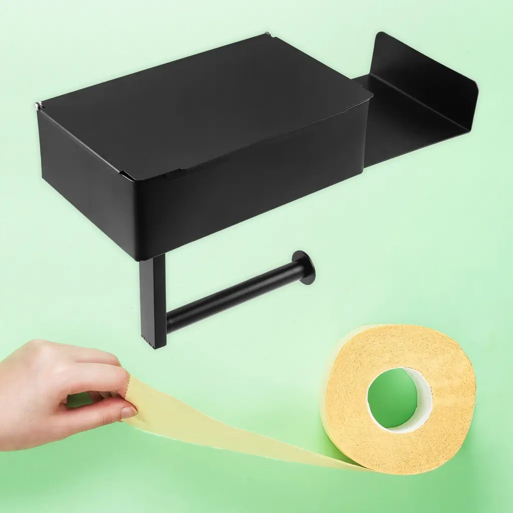 Features:WITH PHONE HOLDER DESIGN: This toilet paper holder has a storage bracket, which can provide a place for you to place your mobile phone and other items, which is more convenient.MATERIAL: Made of 304 stainless steel, the good waterproof performance makes the toilet paper holder more durable.EASY TO INSTALL: The toilet paper holder has TWO installation methods. Adhesive Strips Installation: Tear off the sticker and stick it on smooth walls like tiles, etc. It won't damage your walls. Screw installation: You can install it on any wall that can be punched.STRONG BEARING: This toilet paper holder has a strong load-bearing capacity, so you don't have to worry about the problem of falling due to being overweight when placing items such as mobile phones.Specifications:Product Name: Toilet Paper HolderMaterial: Stainless SteelSize: 21x13.5x6.5cm / 8.27"x5.31"x2.56"(L*W*H)Quantity: 1 PcsColor: BlackPackage List:1 Pcs Toilet Paper Holder