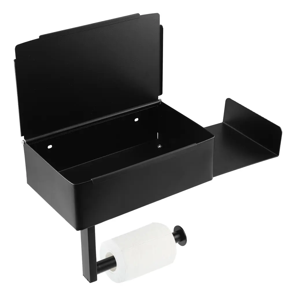 Bathroom Toilet Roll Tissue Holder Wall Mount With Phone Shelf Holder Black - Black