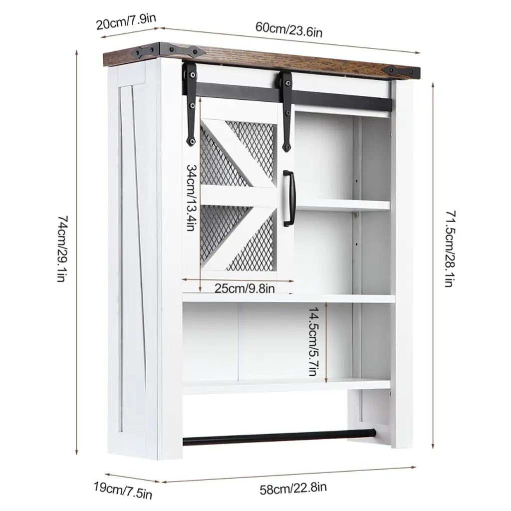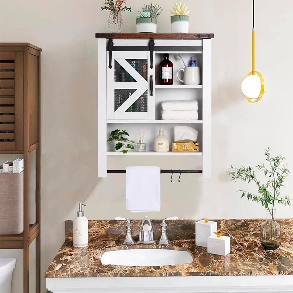 Bathroom Wall Mounted Cabinet, Medicine Cabinet with Sliding Barn Door & Adjustable Shelf, Farmhouse Over Toilet Storage Cabinets with Towel Bar for Bathroom Laundry Room Kitchen