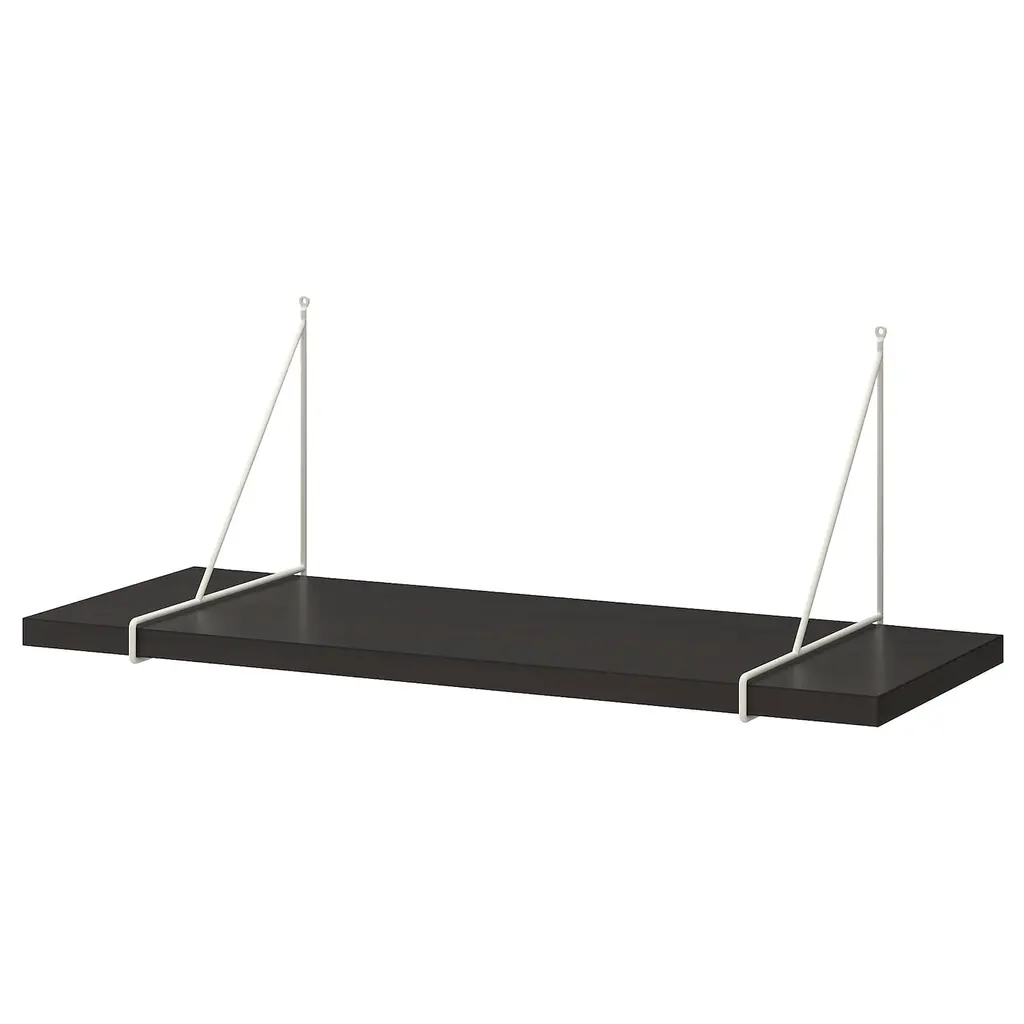 BERGSHULT / GRANHULT Wall shelf - brown-black/nickel plated 31 1/2x11 3/4 ". The wall shelf has one bevelled and one smooth edge on the long side, so you can choose the side you want facing the room depending on which of the two different styles you like the most.
