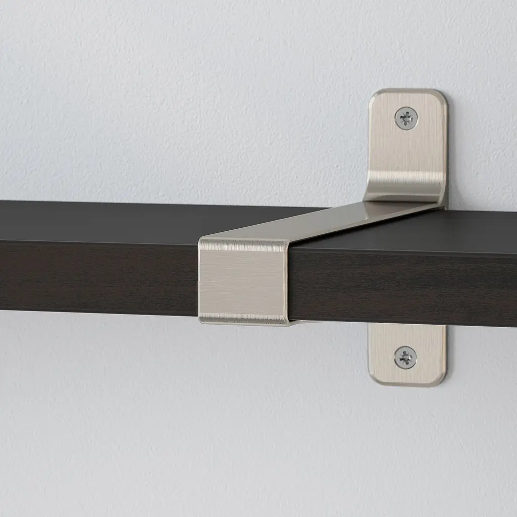 BERGSHULT / GRANHULT Wall shelf - brown-black/nickel plated 63x7 7/8 ". The wall shelf has one bevelled and one smooth edge on the long side, so you can choose the side you want facing the room depending on which of the two different styles you like the most.