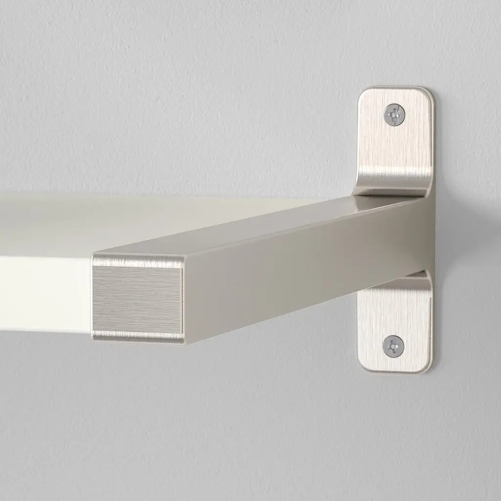 BERGSHULT / GRANHULT Wall shelf - white/nickel plated 63x11 3/4 ". The wall shelf has one bevelled and one smooth edge on the long side, so you can choose the side you want facing the room depending on which of the two different styles you like the most. Screws for wall mounting are not included.