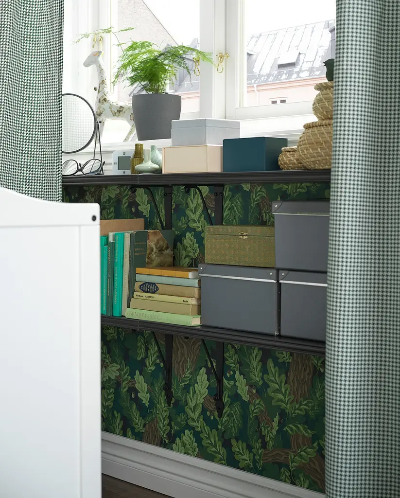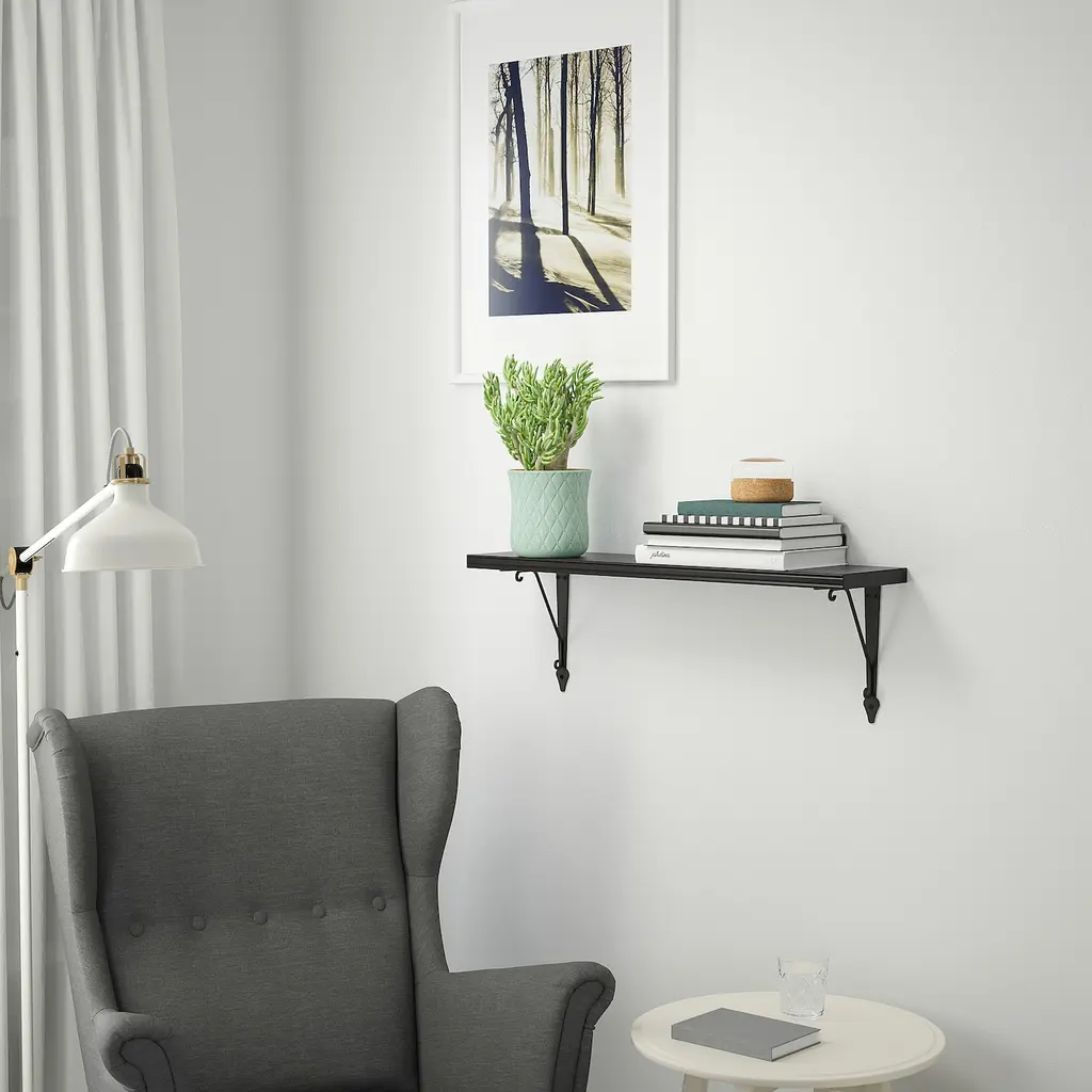 BERGSHULT / KROKSHULT Wall shelf - brown-black/anthracite 31 1/2x7 7/8 ". The wall shelf has one bevelled and one smooth edge on the long side, so you can choose the side you want facing the room depending on which of the two different styles you like the most. Screws are not included.