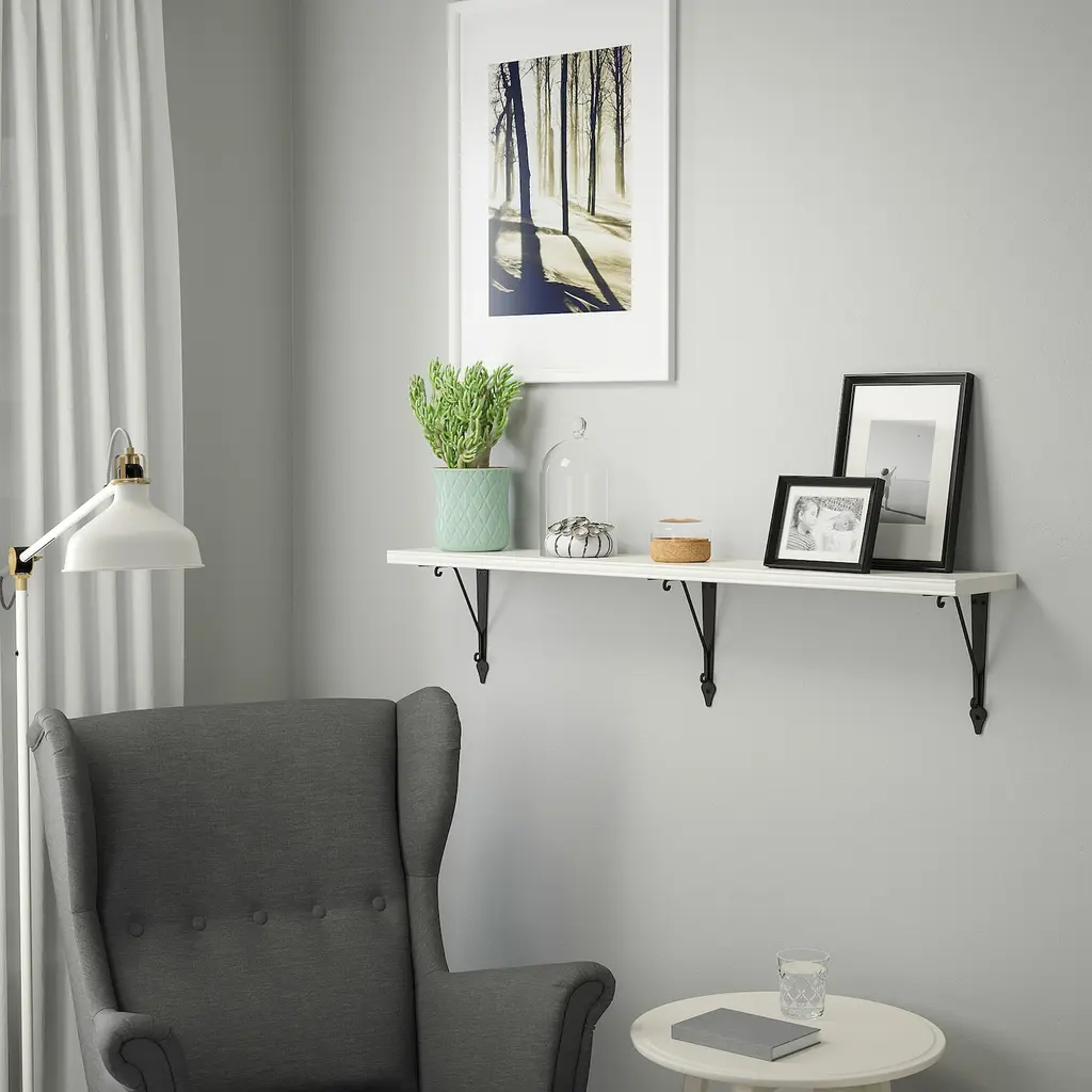 Bergshult / Krokshult Wall Shelf - White/anthracite 47 1/4x7 7/8 "