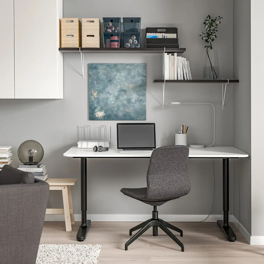 BERGSHULT / PERSHULT Wall shelf combination - brown-black/white 47 1/4x11 3/4 ". The wall shelf has one bevelled and one smooth edge on the long side, so you can choose the side you want facing the room depending on which of the two different styles you like the most.