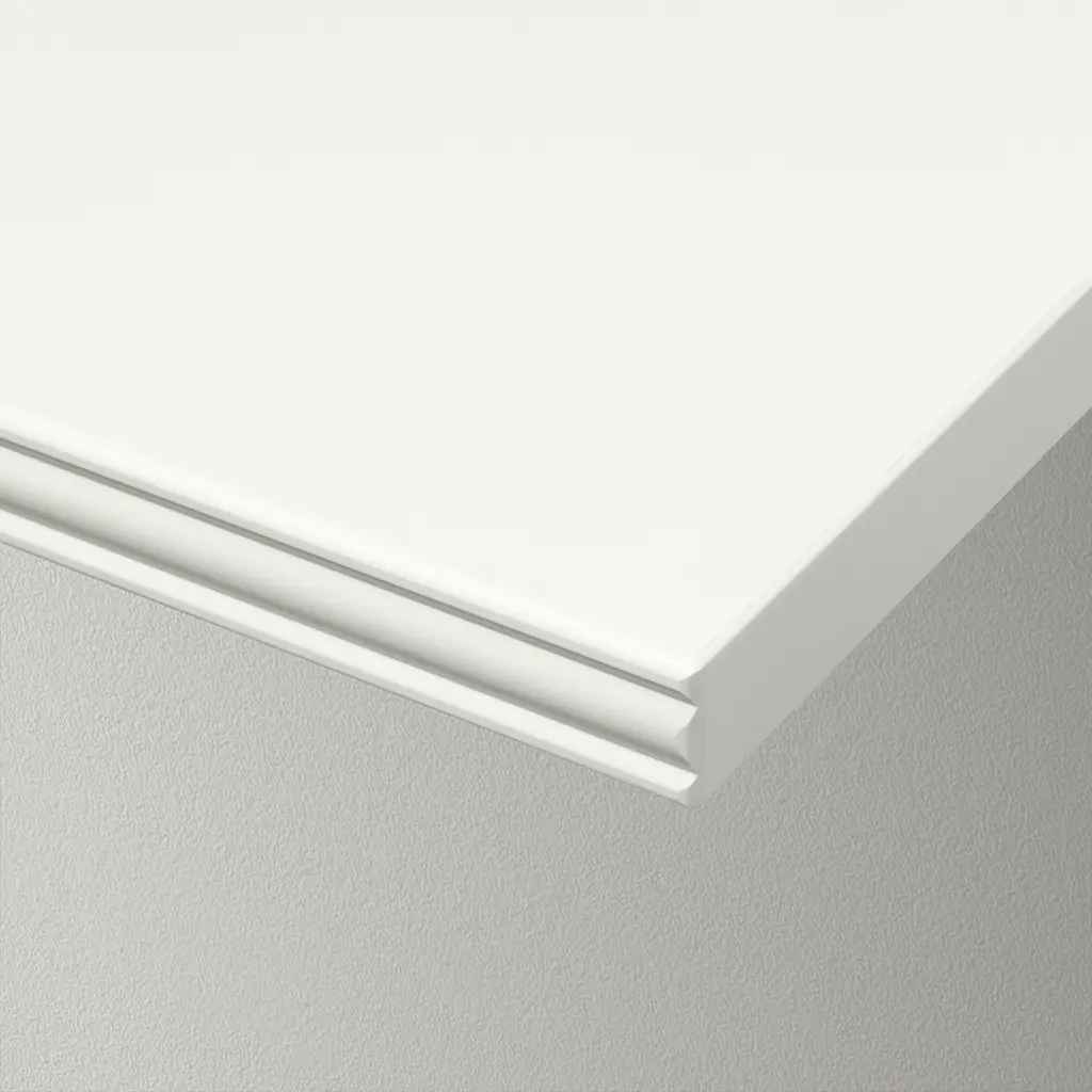 BERGSHULT / PERSHULT Wall shelf - white/white 31 1/2x7 7/8 ". The wall shelf has one bevelled and one smooth edge on the long side, so you can choose the side you want facing the room depending on which of the two different styles you like the most. Screws for wall mounting are not included.