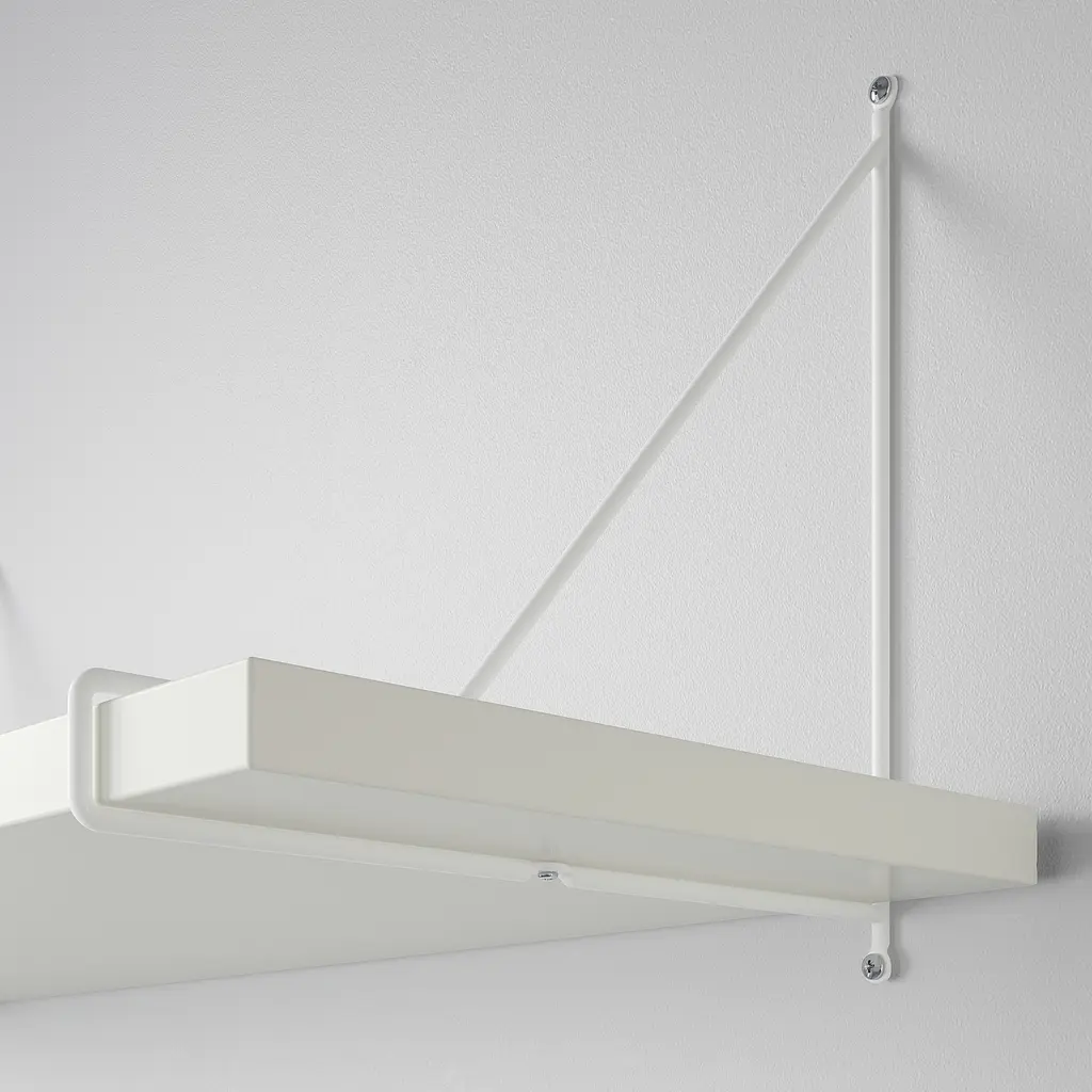 BERGSHULT / PERSHULT Wall shelf - white/white 47 1/4x11 3/4 ". The wall shelf has one bevelled and one smooth edge on the long side, so you can choose the side you want facing the room depending on which of the two different styles you like the most. Screws for wall mounting are not included.