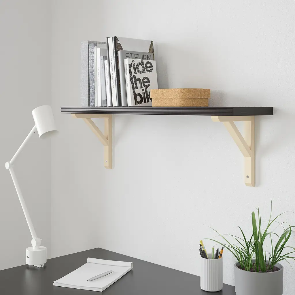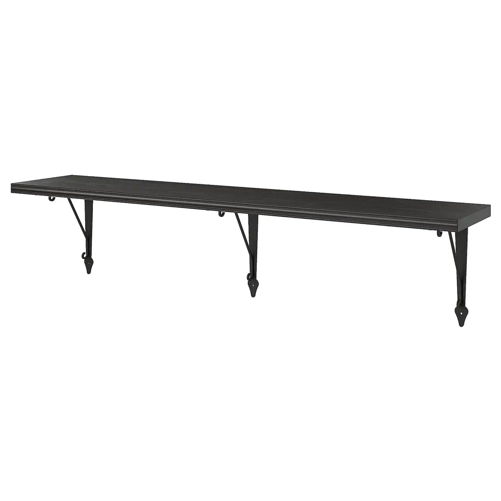 BERGSHULT / SANDSHULT Wall shelf - brown-black/aspen 31 1/2x7 7/8 ". The wall shelf has one bevelled and one smooth edge on the long side, so you can choose the side you want facing the room depending on which of the two different styles you like the most. Screws are not included.