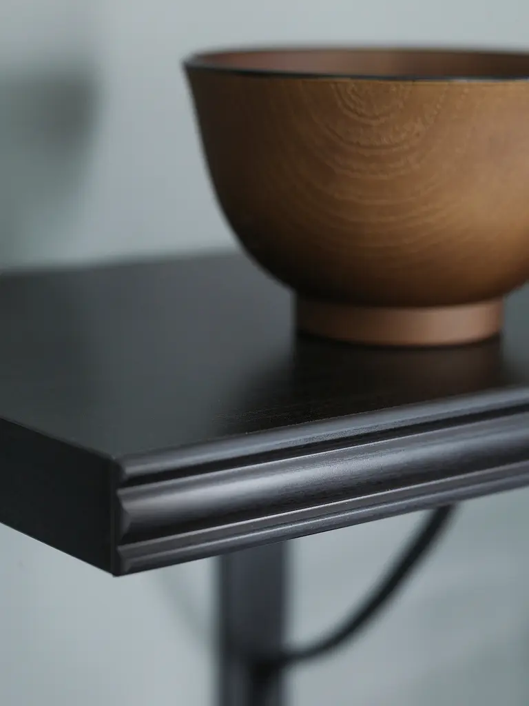 BERGSHULT Shelf - brown-black 31 1/2x11 3/4 ". The wall shelf has one bevelled and one smooth edge on the long side, so you can choose the side you want facing the room depending on which of the two different styles you like the most. Brackets are sold separately. Screws are not included.