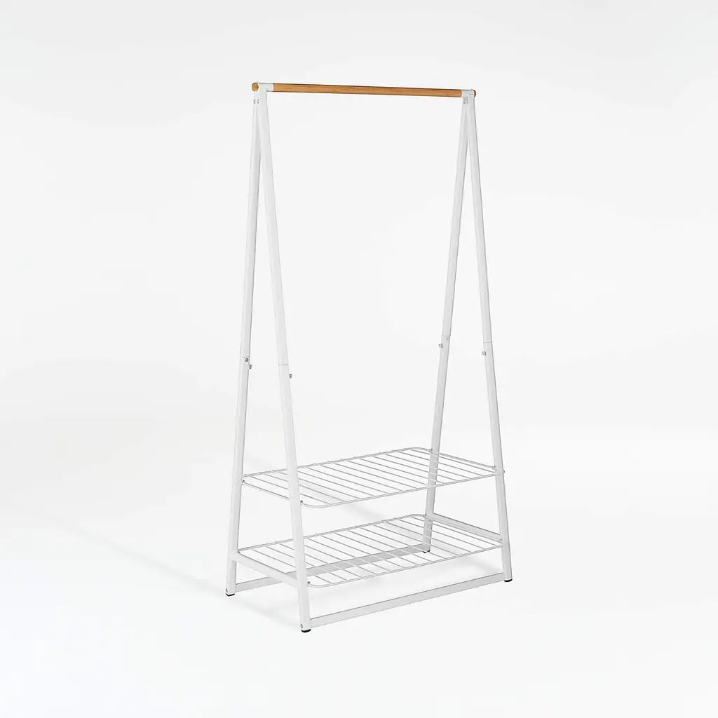 Our Bery standing clothing and shoe rack, resplendent in a white finish and meticulously crafted from MDF, composite board, and metal, brings a touch of glamour to your realm of storage solutions. With its open metal frame adorned in a lustrous gold finish, this rack not only provides practical organization but also serves as a striking decorative element. Check out our Bery collection for more.