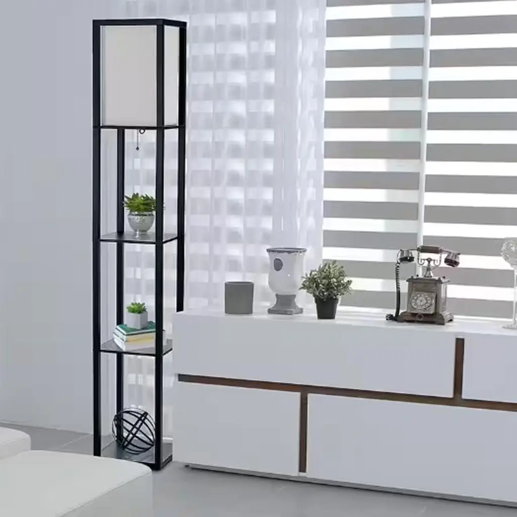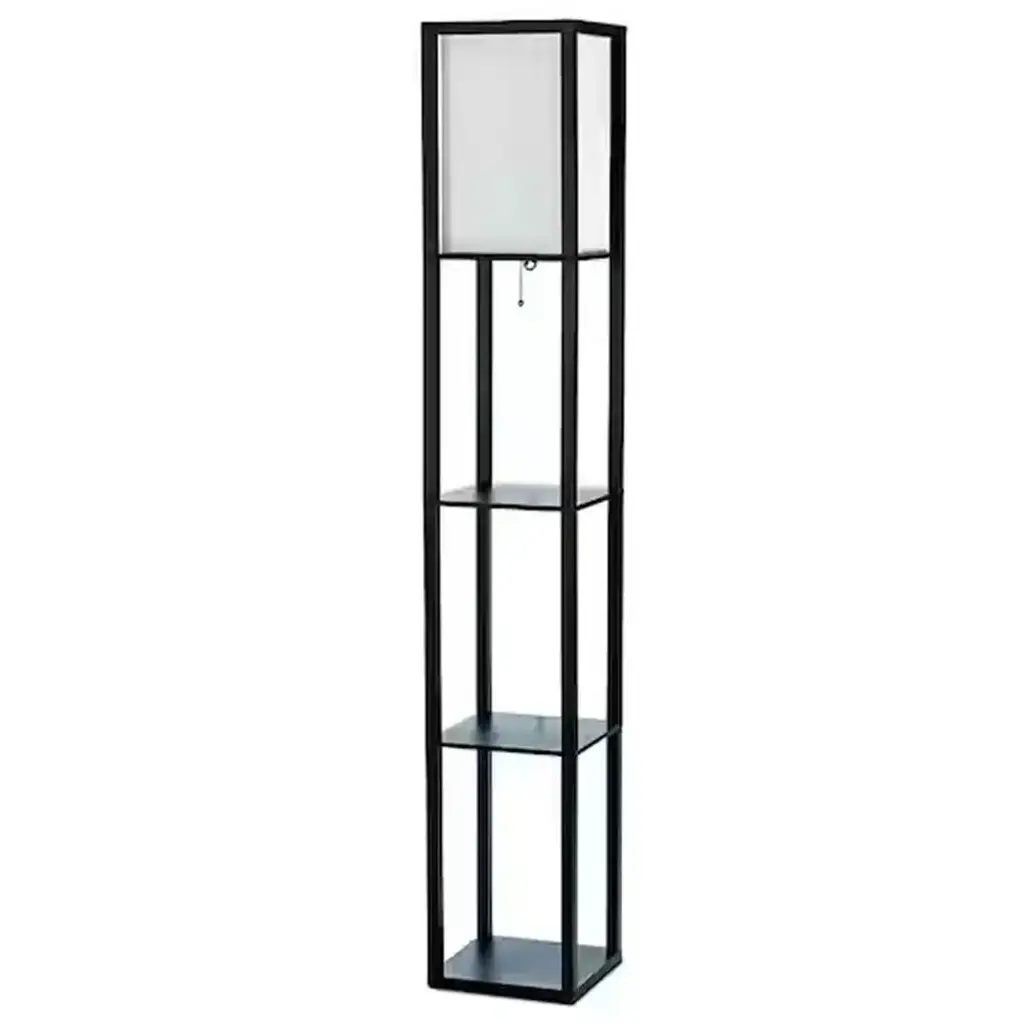 Illuminate your living space in style with our floor shelf lamp with linen shade. This gorgeous piece adds versatility as the shelves can be used to display photographs and other memorabilia while the linen lamp shade casts a soft, warming light throughout your living space. This lamp adds sophistication and style to any home's decor. Highlights Floor lamp with 3 shelves for storage/display Pull-chain on/off switch Linen shade casts soft, warm glow Lamp measures: L:10" x W:10" x H:62.5" Uses 1 x 100W Type A medium base bulb (not included) Assembly required Available in additional finishes