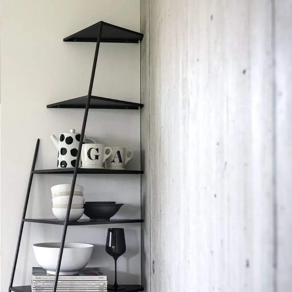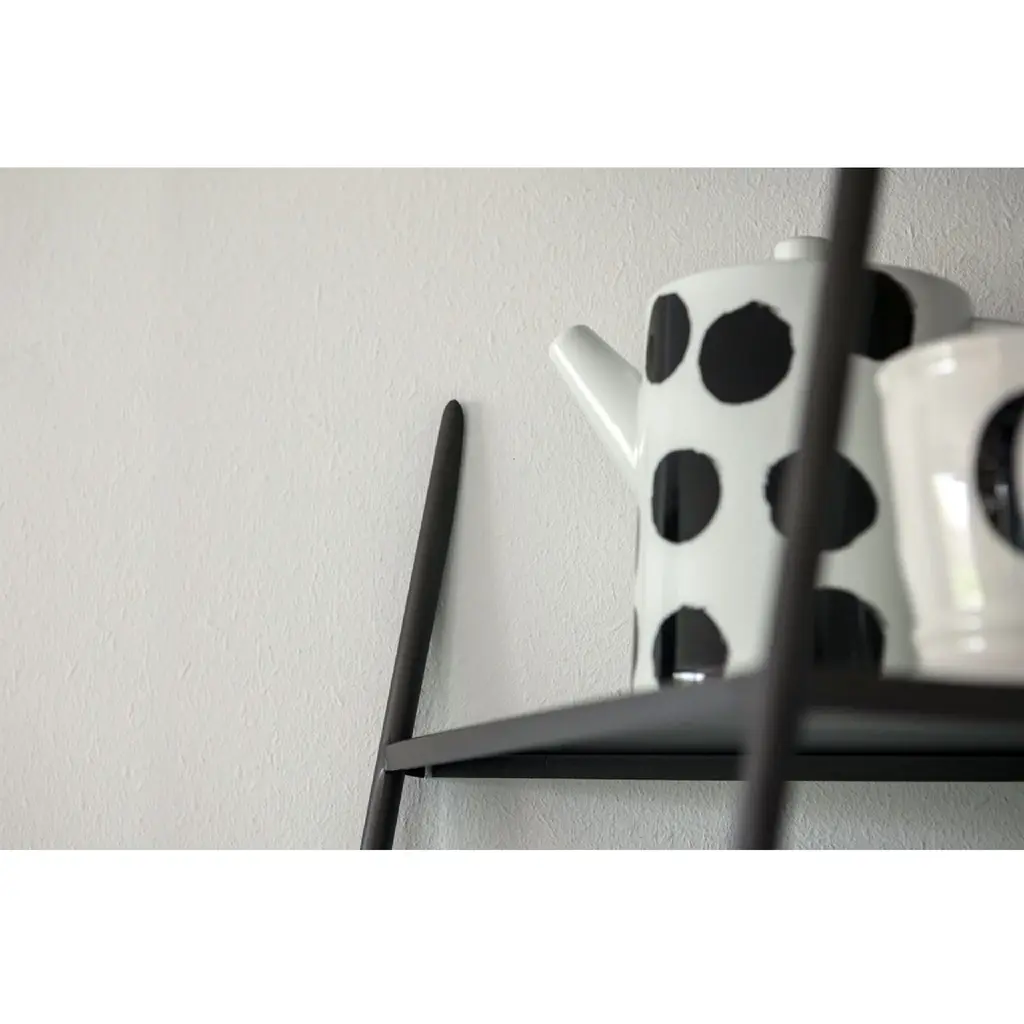 Introducing the Black Ladder Book Shelf from Mogg Mama. This metal etagère is both elegant and functional, with a unique ability to appear almost invisible when resting on the wall. Choose from black or white and three sizes, including angular and flat options. Requires wall fixing. Elevate your space with this sophisticated and exclusive shelving.