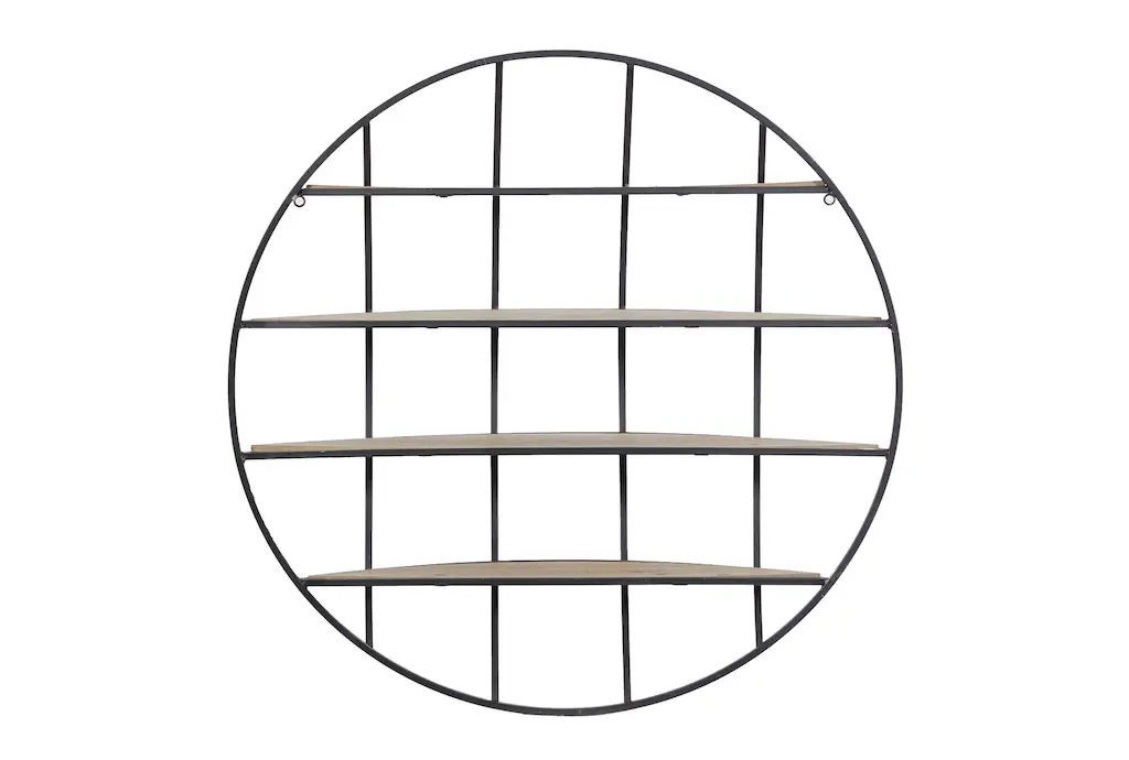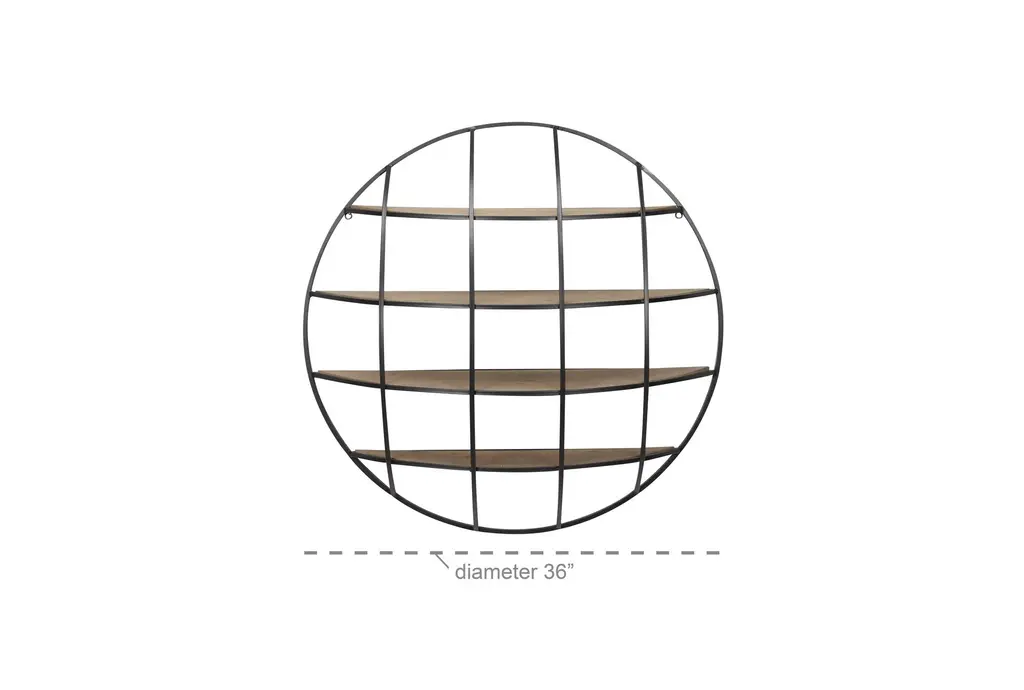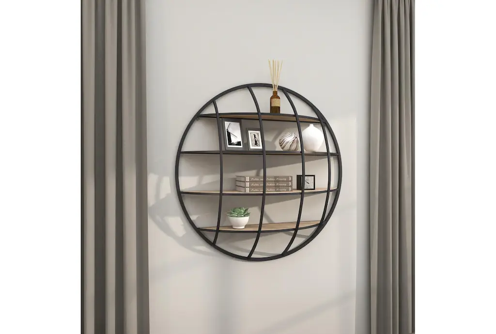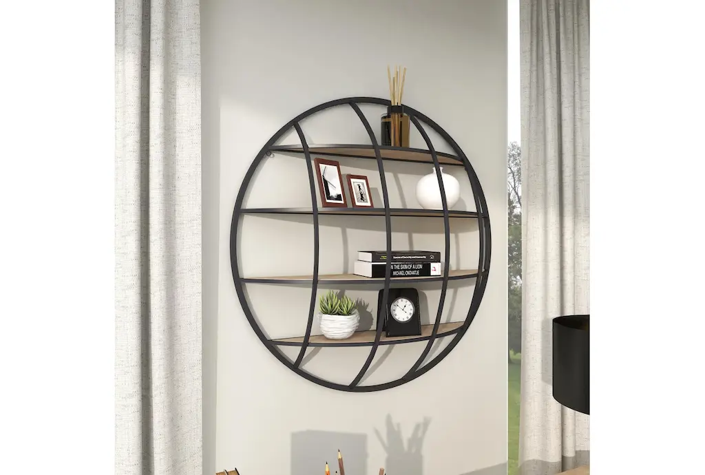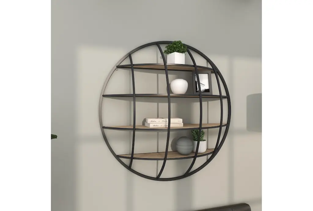 Black Light Brown Curved 36 Inch Metal Wood Wall Shelf | Round