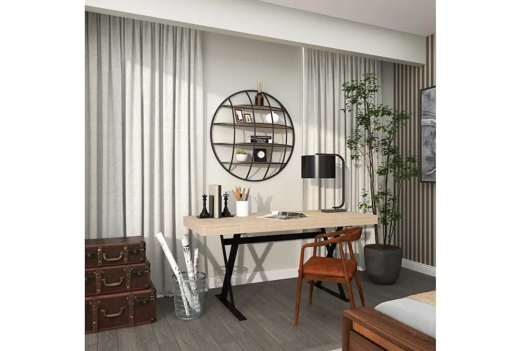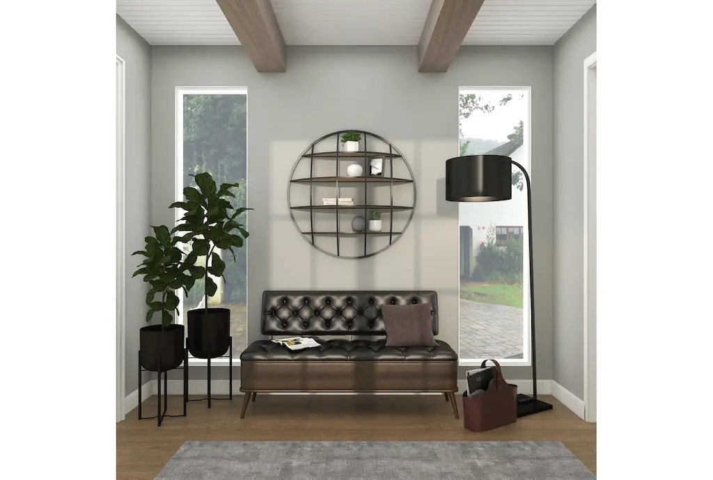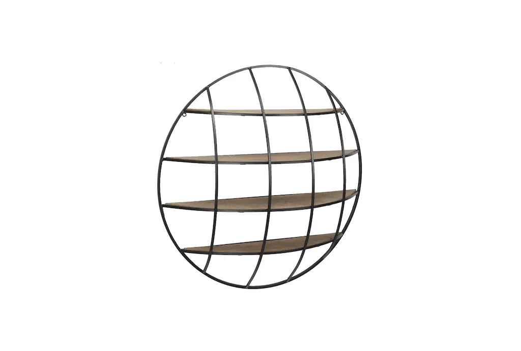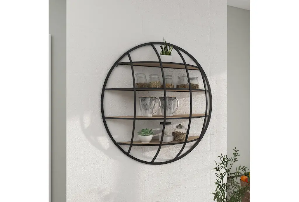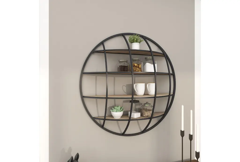 Black Light Brown Curved 36 Inch Metal Wood Wall Shelf | Round