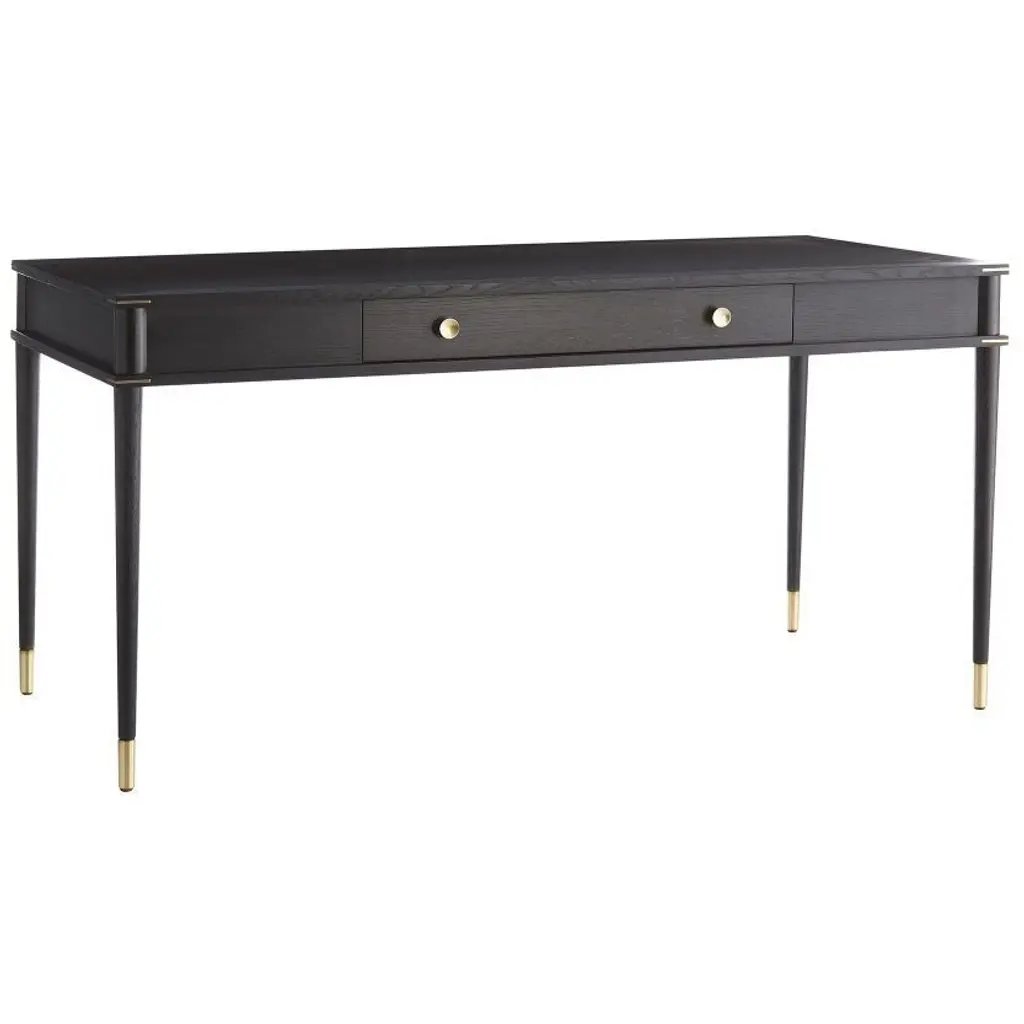 Black Oak Desk With Two Solid Drawers And Shelf In Mid Century Modern Style