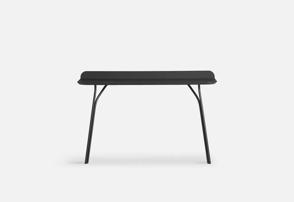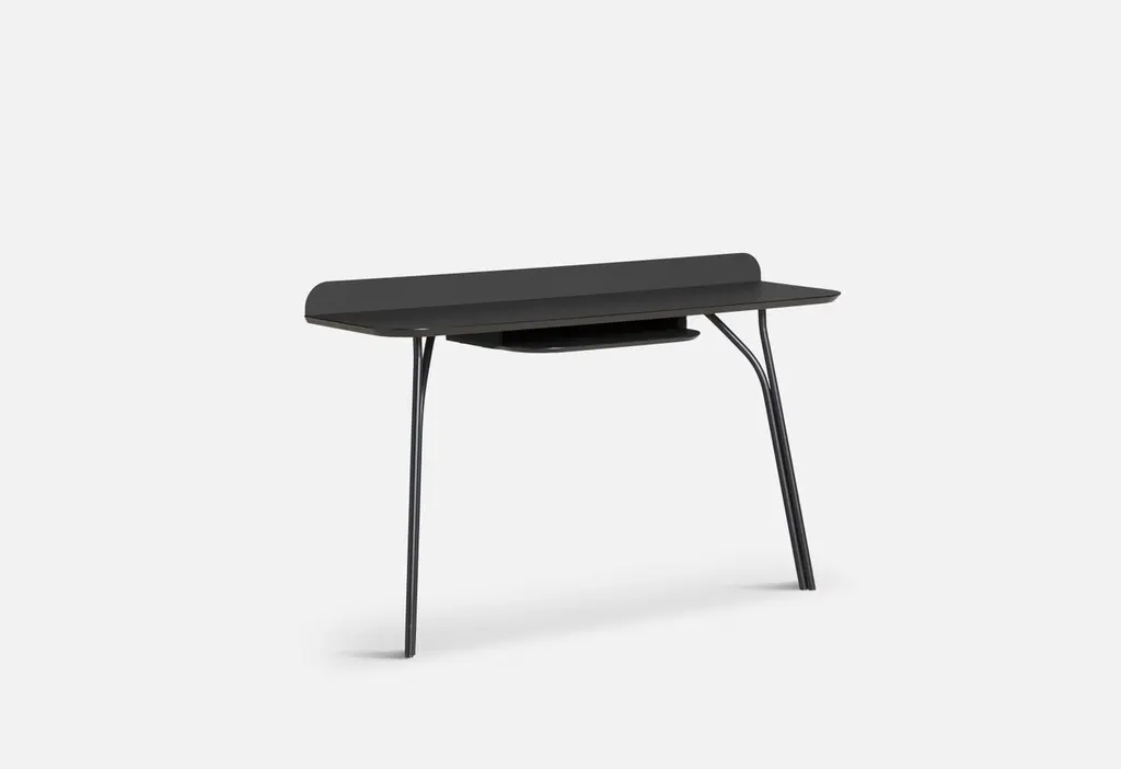 Black tree small console table with shelf by Elisabeth Hertzfeld.Materials: fenix laminate, metal.Dimensions: D 40 x W 130 x H 81 cm.The founders, Mia and Torben Koed, decided to put their 30 years of experience into a new project. It was time for a change and a new challenge. The challenge was to build an ambitious design brand from the ground up with high-quality materials and great attention to the little details. With a drive to create new originals, the WOUD collection is founded upon the idea to look ahead instead of looking back and share the love for honest design. Therefore, we are eager to discover and develop new ideas whether it being in form, function or choice of material. Elisabeth Hertzfeld is a French-American designer. She graduated from the Ecole nationale supérieure des Arts Décoratifs of Paris in 1995 in scenography. Giving her a holistic and poetic approach to design. With a notable portfolio, she has worked as a freelance designer for various brands developing objects, furniture and interior since 2015. Fascinated by materials and their transformation, Elisabeth Hertzfeld tries to discover the decent balance between the effort engaged on a material and its effect. With an aim to create pure pleasure, she imagines a behaviour, a way of life, that can be connected to the design. Providing every single product with a story of their own.
