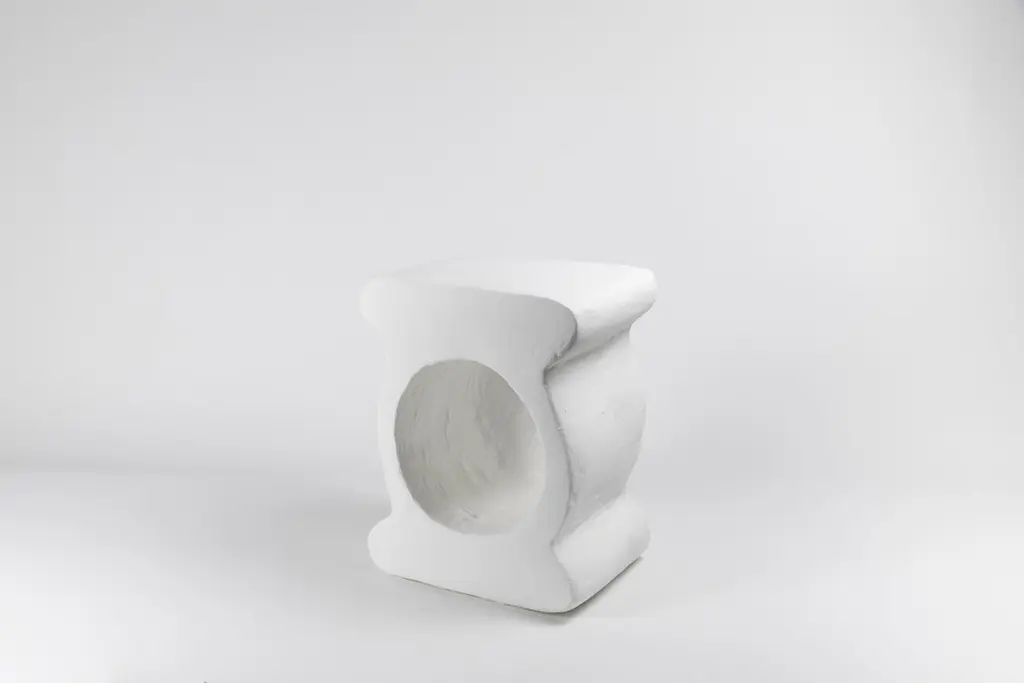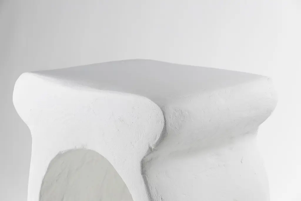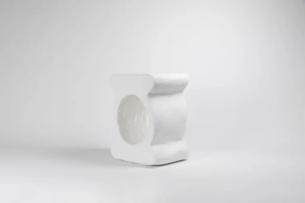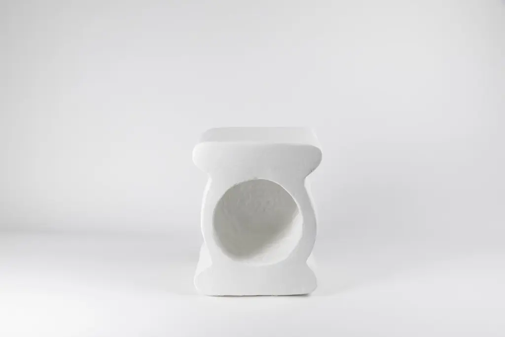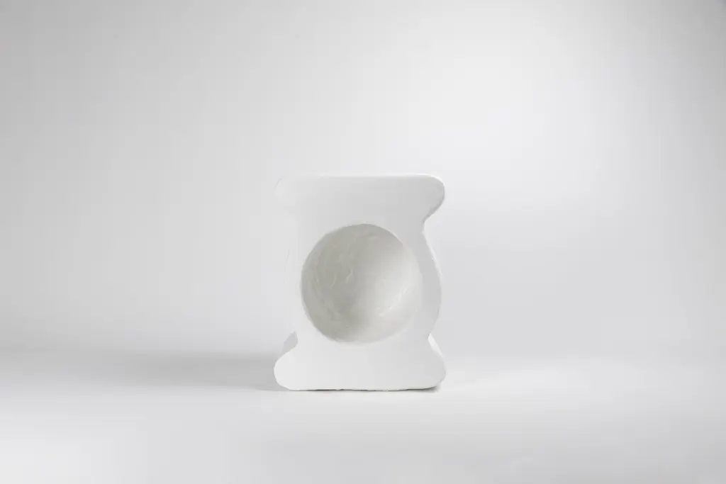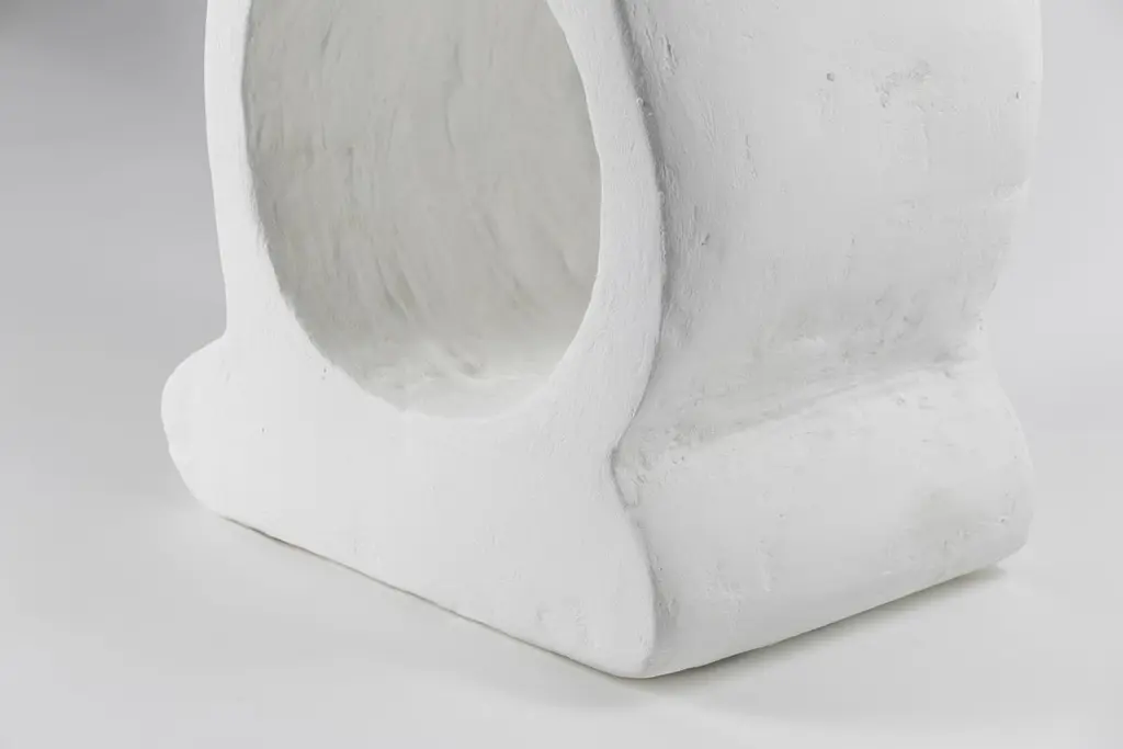 Boba Mini Shelf I by Curvy World StudioHandmadeDimensions: D 35 x W 35 x H 46 cm.Materials: Wood, hemp, recycled marble powder, steel mesh, coating.The Mini Shelf I Boba sideboard belongs to the eponymous collection. A collection that draws its inspiration from the shapes of nature and the world of space exploration. Boba explores and plays with symmetry, geometry, and composition. The pure lines of the circle and the arc of a circle are the foundations of this new formal language, punctuated by the relief of the voids and solids sculpted in the raw material. The Boba sideboard is the imprint of a phantasmagorical universe where dreamlike shapes draw the contours of a new environment, a new space. Boba is handmade from hemp bio-concrete using a craft manufacturing technique developed within the studio. The piece is produced in an edition of 8. It is signed and numbered.Curvy World Studio is a studio for the creation and design of furniture and objects in bio-hemp concrete and ceramics.Founded in 2020 by artist-designer Sarah Montet, the studio explores matter through a sculptural dimension and a vocabulary of forms that are both dreamlike and organic.Each piece is handmade in her workshop and produced in small series or as a unique piece.The studio also works on interior design and decoration projects, with custom-made, hand-sculpted installations and furniture.
