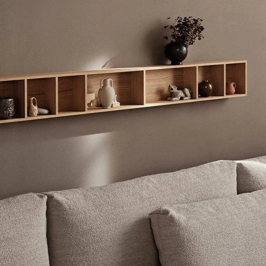 Made to complement the Bon collection, the Bon Shelf is ideal for holding and displaying your favorite things. Designed with a love for classic craftsmanship, the elegant and slim shelf has visible, detailed joints on the corners. The Bon Shelf can be mounted both vertically and horizontally. Let it hold your favorite mugs or bowls in the kitchen, use it for skincare and scented candles in the bathroom or mount the shelf on any other wall in the home where you are in need of an aesthetic storage solution.