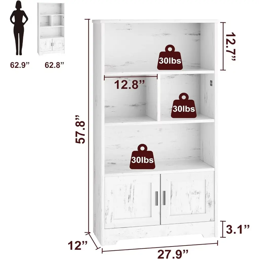 Quality Materials: This farmhouse bookshelf adopts high-density MDF boards and a well-structured metal frame design to withstand the challenge of long-term use. What's more, the thickened laminate and wood base enhance the stability of this bookcase to hold up to 33 pounds per shelf, adjustable feet can keep the unit level on uneven flooring and protect the ground from scratches. Three Color LED Lights Bookshelf: The LED bookcase has 3 colors: white/blue/warm light and you can adjust the brightness from 30%-50%-100%, it can also be set to automatically sense-turn on automatically when approaching, and turn off automatically when you leave, which can be adjusted according to the real-time scene of the light and provides a contemporary look that will fit right in with any space. Plenty of Storage Space: the overall dimension of this modern bookshelf is:27.9" L * 12" W * 57.8"H, comes with a cabinet to provide dust-proof and private storage space for toys, books and other items, the large bookshelf is an ideal organization to maximize vertical storage space for all of your storage and display needs, it can easily fit the narrow space or every corner of your room. Multi-Functional: A wooden bookshelf displays a combination of decoration and functionality. The modern bookcase can be used as a bookshelf in the study room, an open display rack of collections in your living room or a storage shelf of spices in the kitchen, it also fits perfectly into the bedroom, home office, bathroom, balcony and so on. Easy Assembly & Easy to Clean: The large bookshelf comes with step-by-step illustrated instructions and necessary accessories to help you finish the whole installation effortlessly, the hardware and parts are marked with numbers or letters on each piece for your needs, besides, the surface is smooth and waterproof, just clean it with a damp cloth.