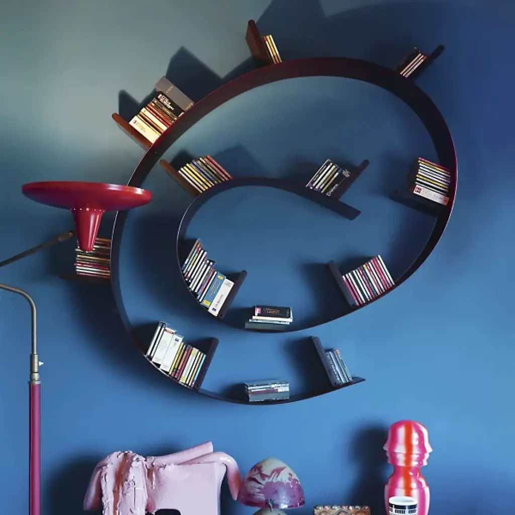 The Kartell Bookworm Shelf designed by Ron Arad combines an artist's creativity with a great company's technology. A careful analysis of extrusion technology allowed for the creation of this curvy, flexible PVC bookcase, which assumes any desired shape without compromising strength and functionality. It is advisable to install the shelf in a curved shape to keep the materials in tension and to increase resistance once loaded.