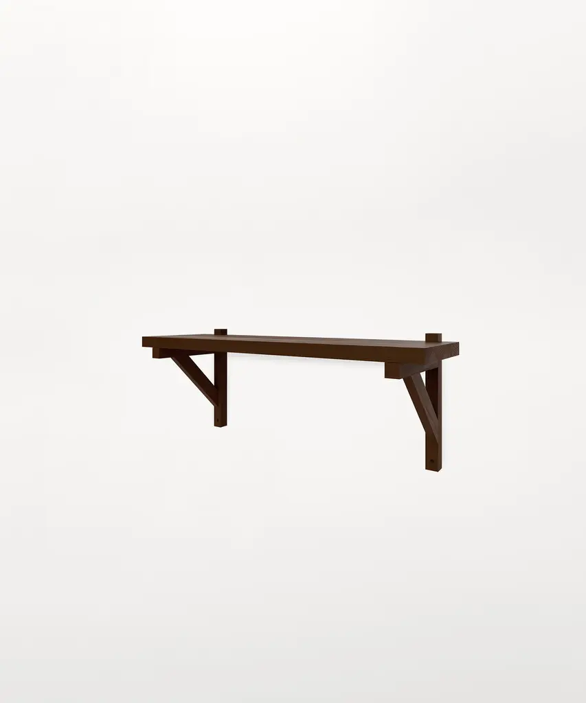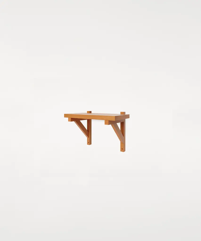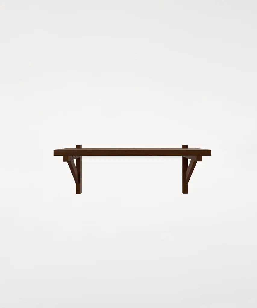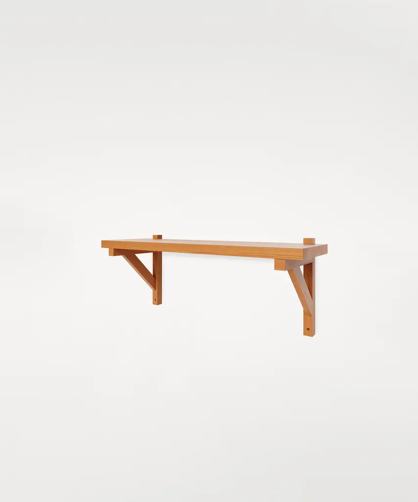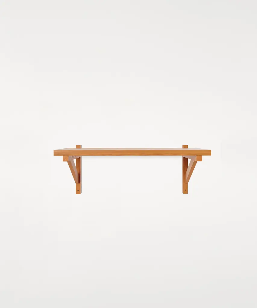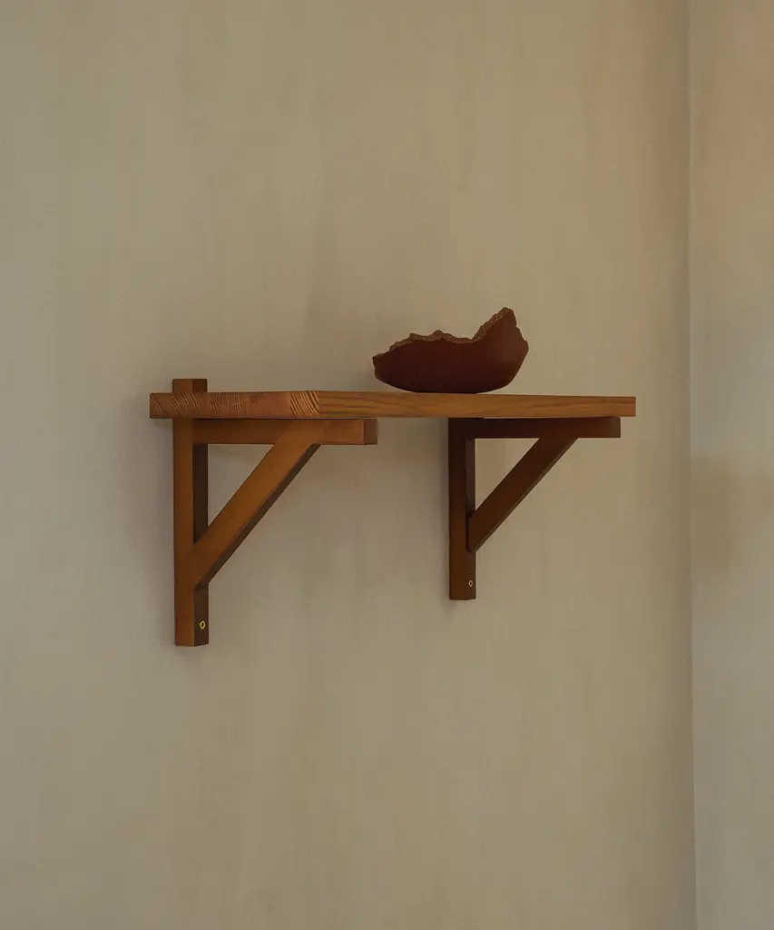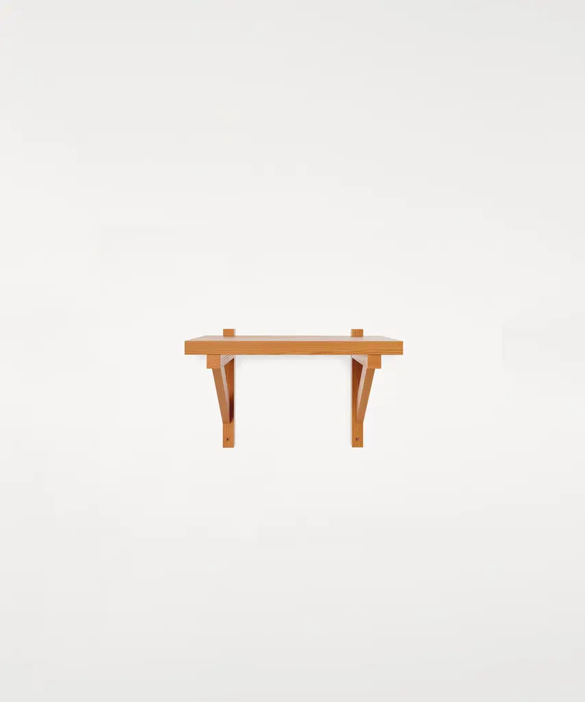 The Bracket Shelf, designed in collaboration with Copenhagen-based design studio Frederik Gustav, is a floating piece for the storage or display of objects fabricated in solid oiled pine highlighted by a structural component, the bracket. This purely functional element turned into an aesthetic feature is mounted to the wall and supports the shelf providing stability—an architectural influence, a nod to timeless construction. Designed by Fredrik Gustav for Frama - an interior and product design studio based in Copenhagen. The studio is a dynamic testing ground for new designs and projects, embodying their classical, yet boundary-pushing approach.