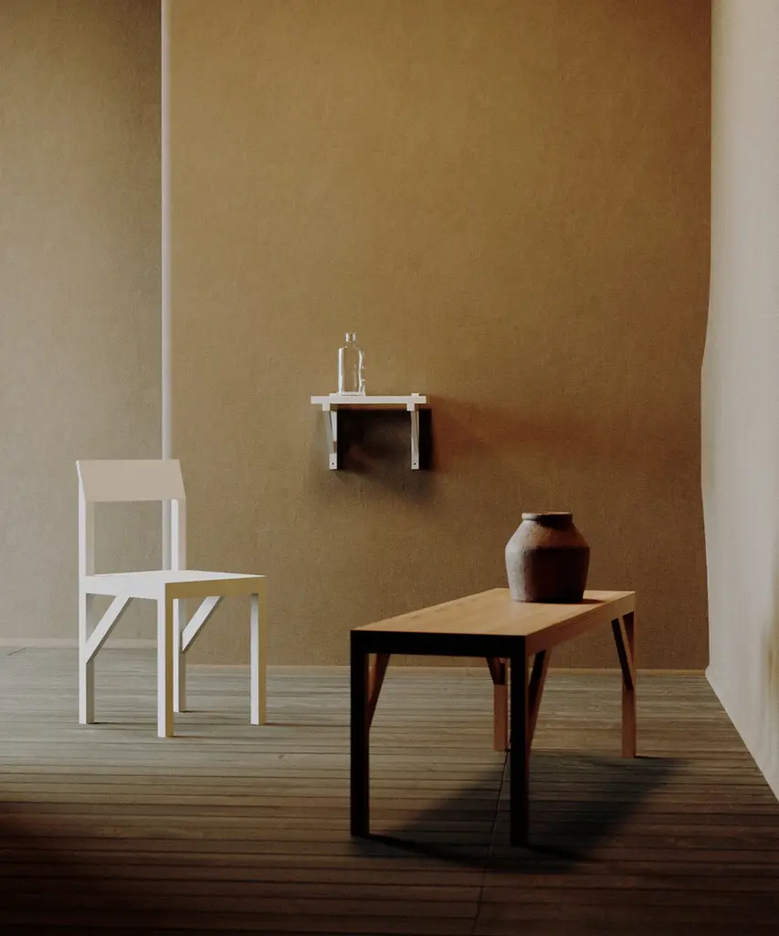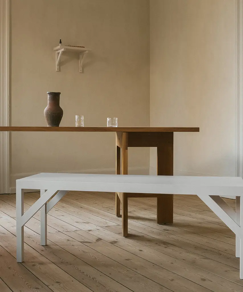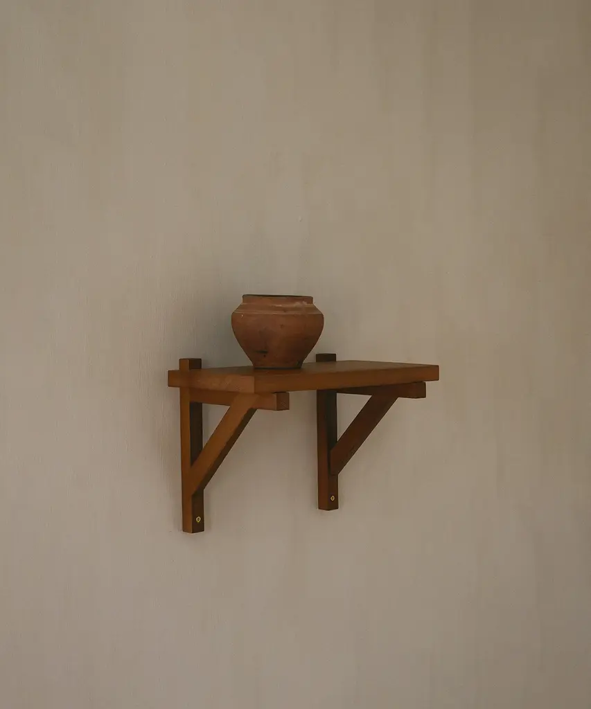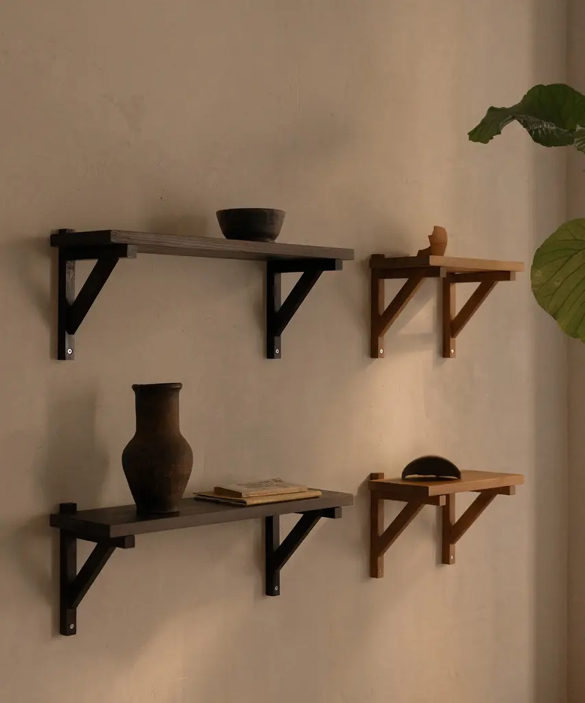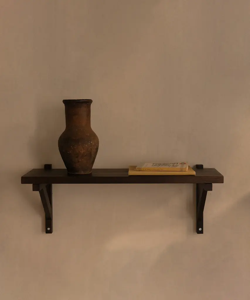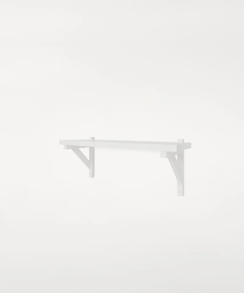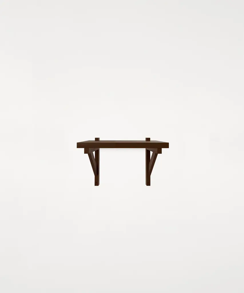 The Bracket Shelf, designed in collaboration with Copenhagen-based design studio Frederik Gustav, is a floating piece for the storage or display of objects fabricated in solid oiled pine highlighted by a structural component, the bracket. This purely functional element turned into an aesthetic feature is mounted to the wall and supports the shelf providing stability—an architectural influence, a nod to timeless construction. Designed by Fredrik Gustav for Frama - an interior and product design studio based in Copenhagen. The studio is a dynamic testing ground for new designs and projects, embodying their classical, yet boundary-pushing approach.