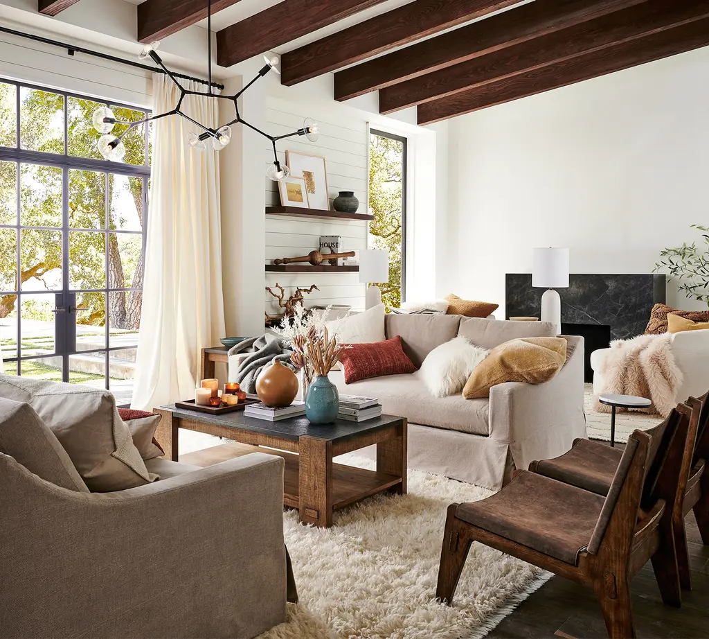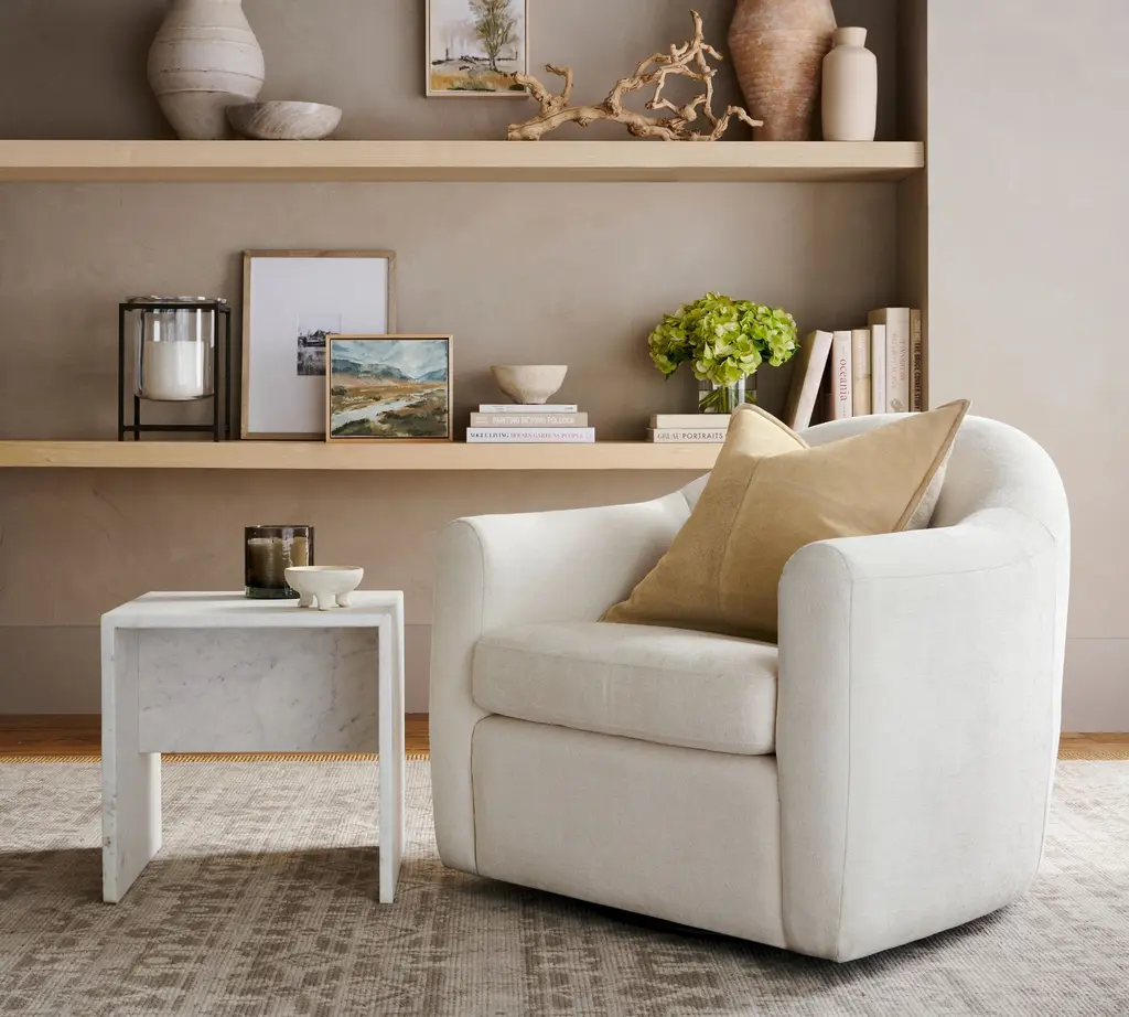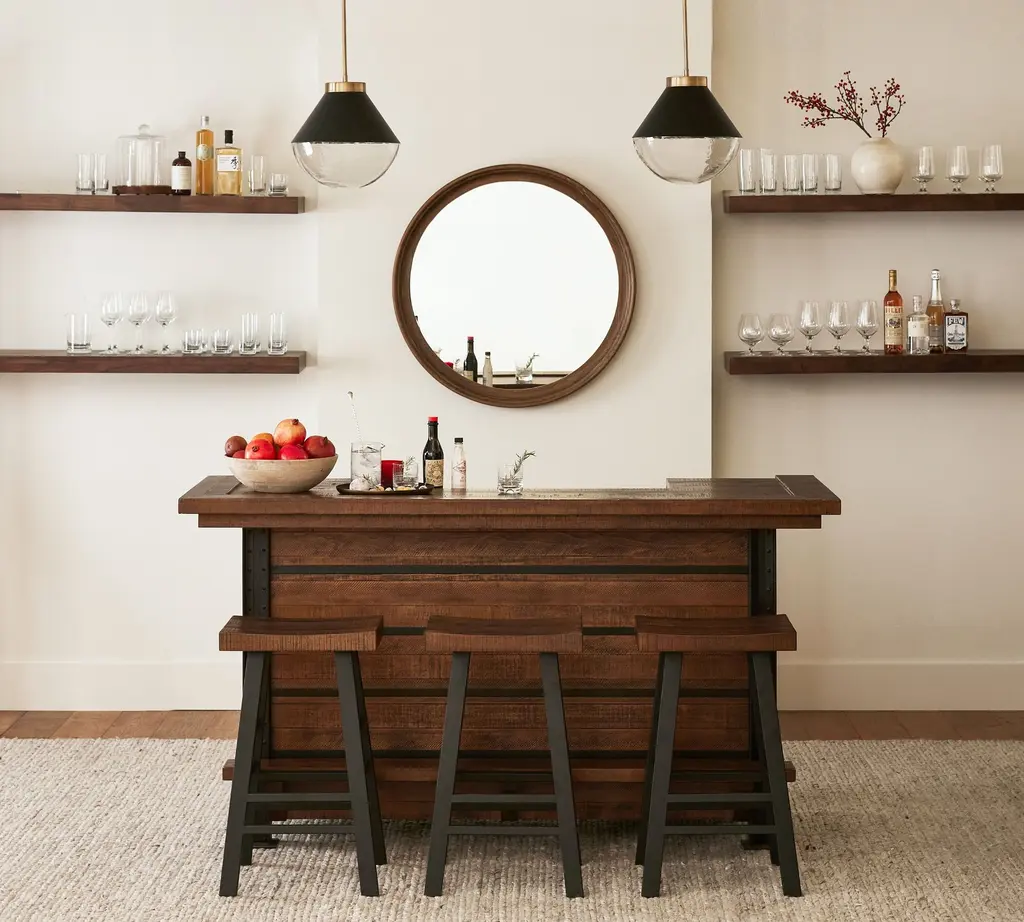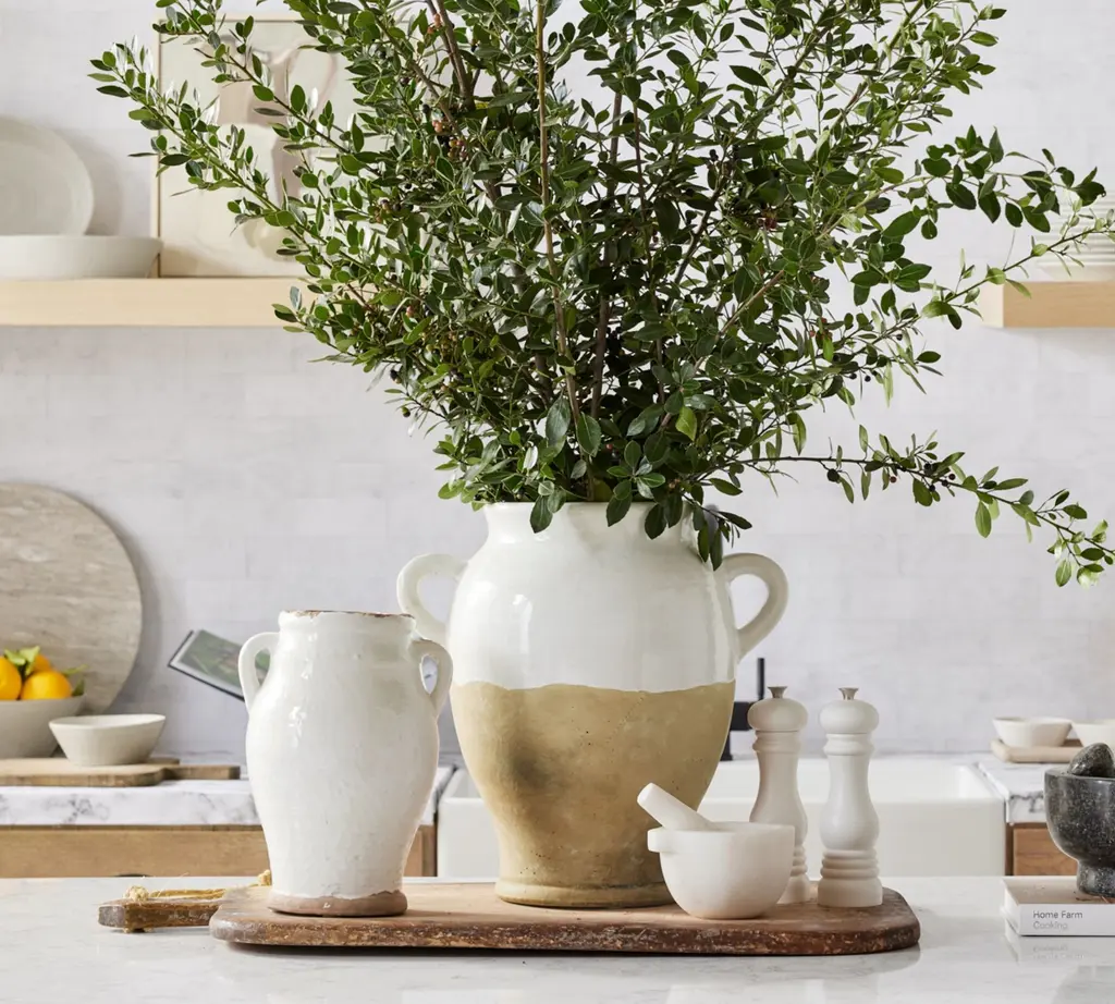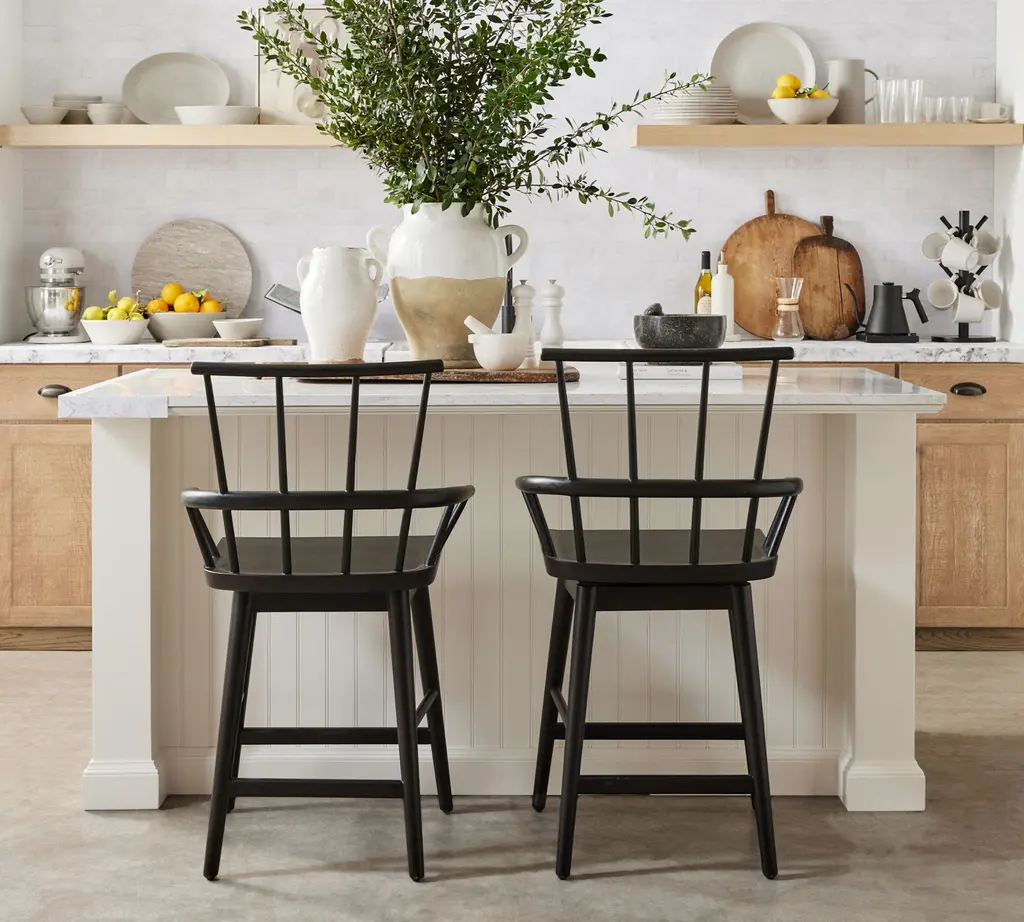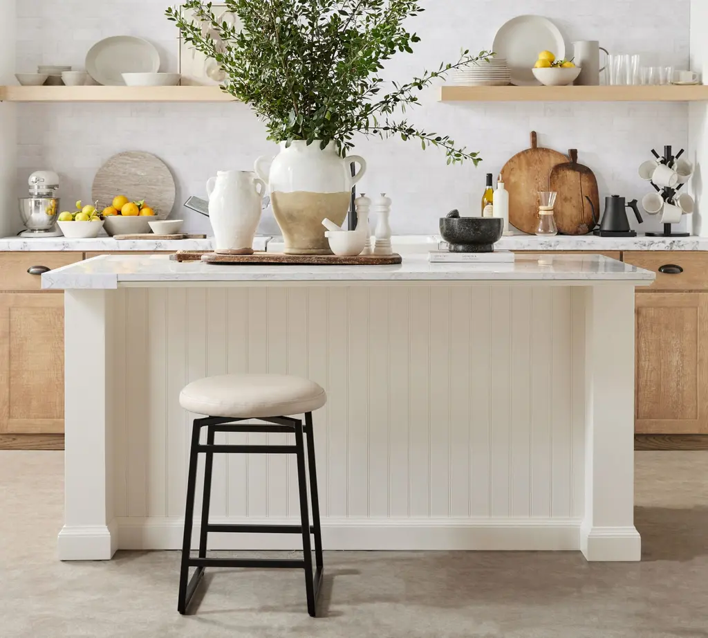 We love the versatility and style of open shelving. With a clean, minimalist design, these wooden shelves have a modern look. Display your collection of dinnerware, books, or curate a well-styled vignette with a statement branch, a rustic vase, and artful candleholders.